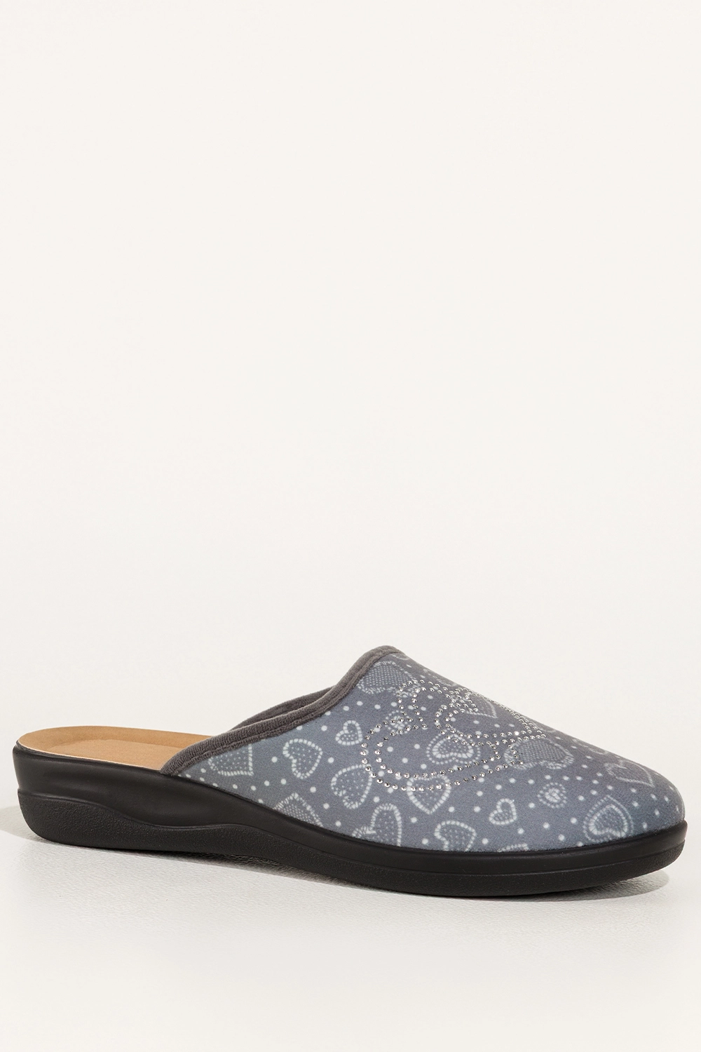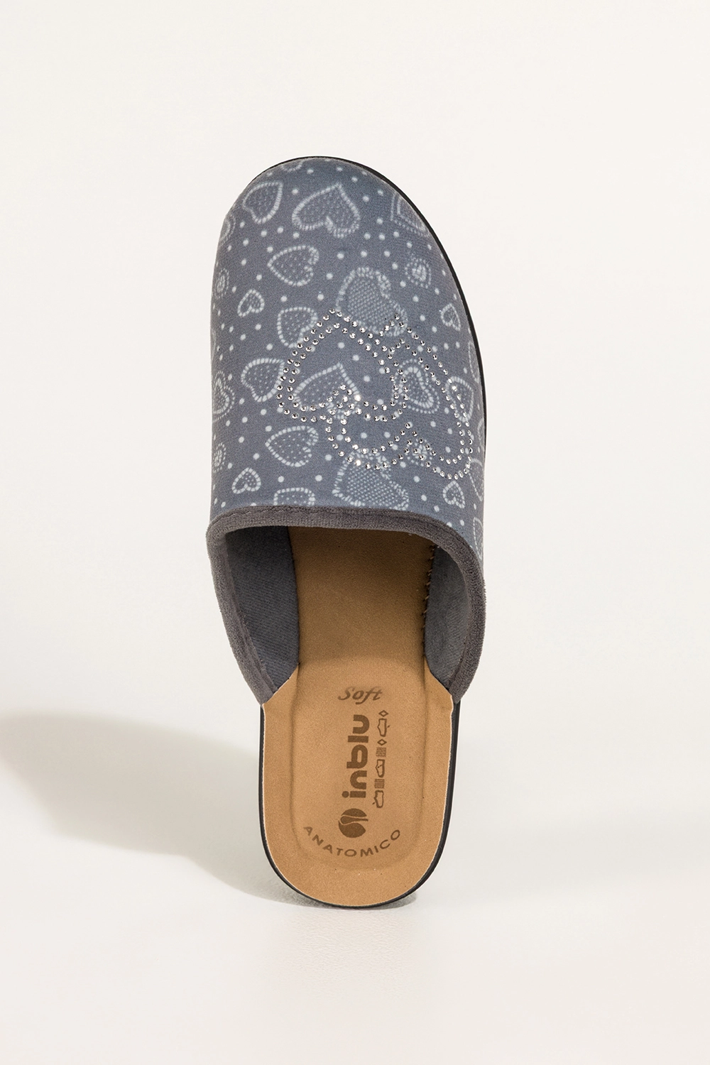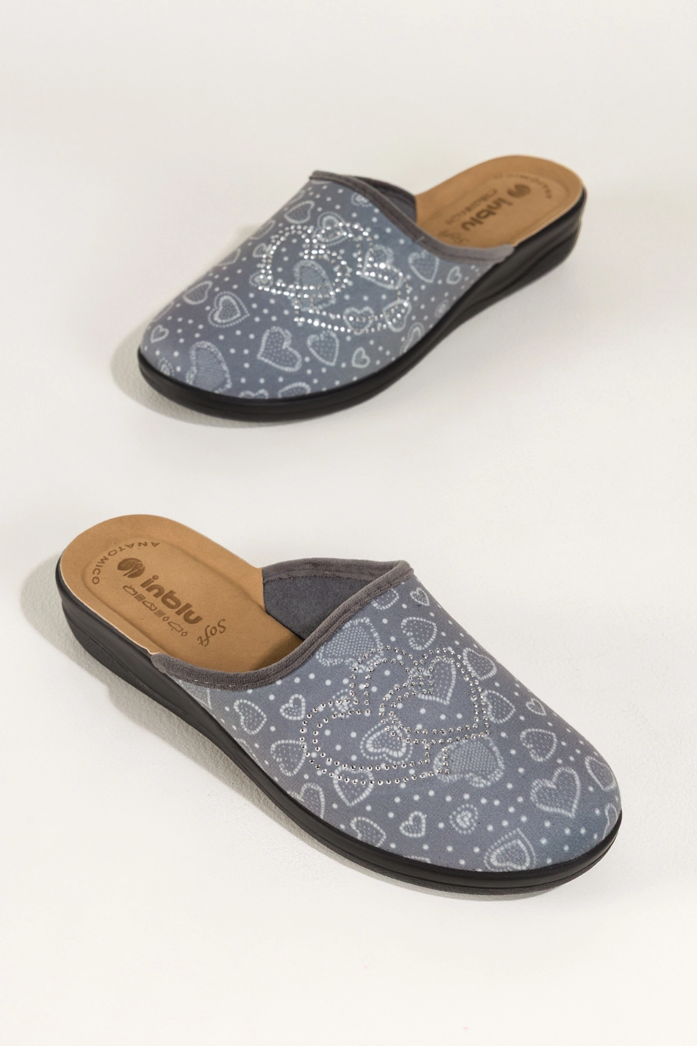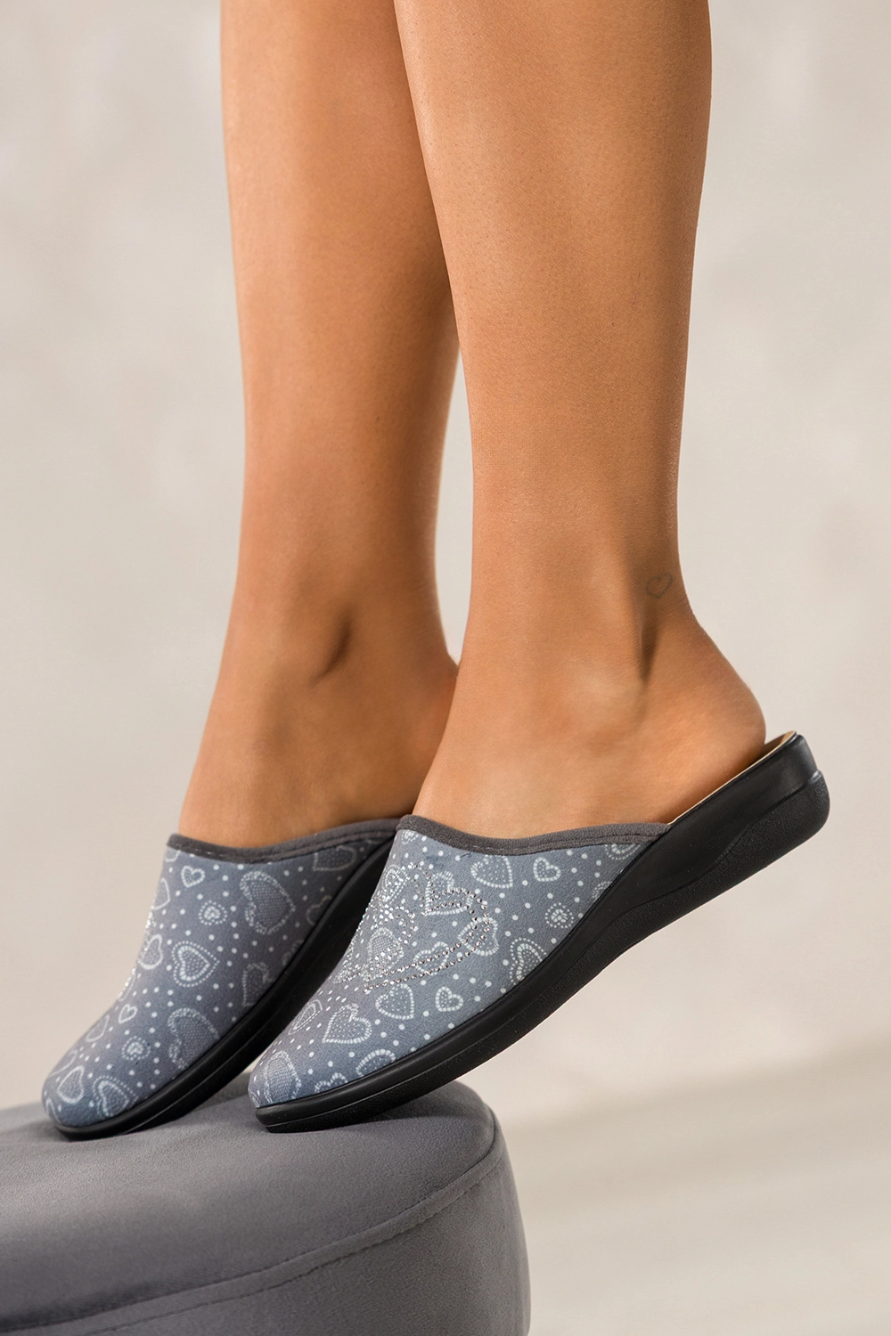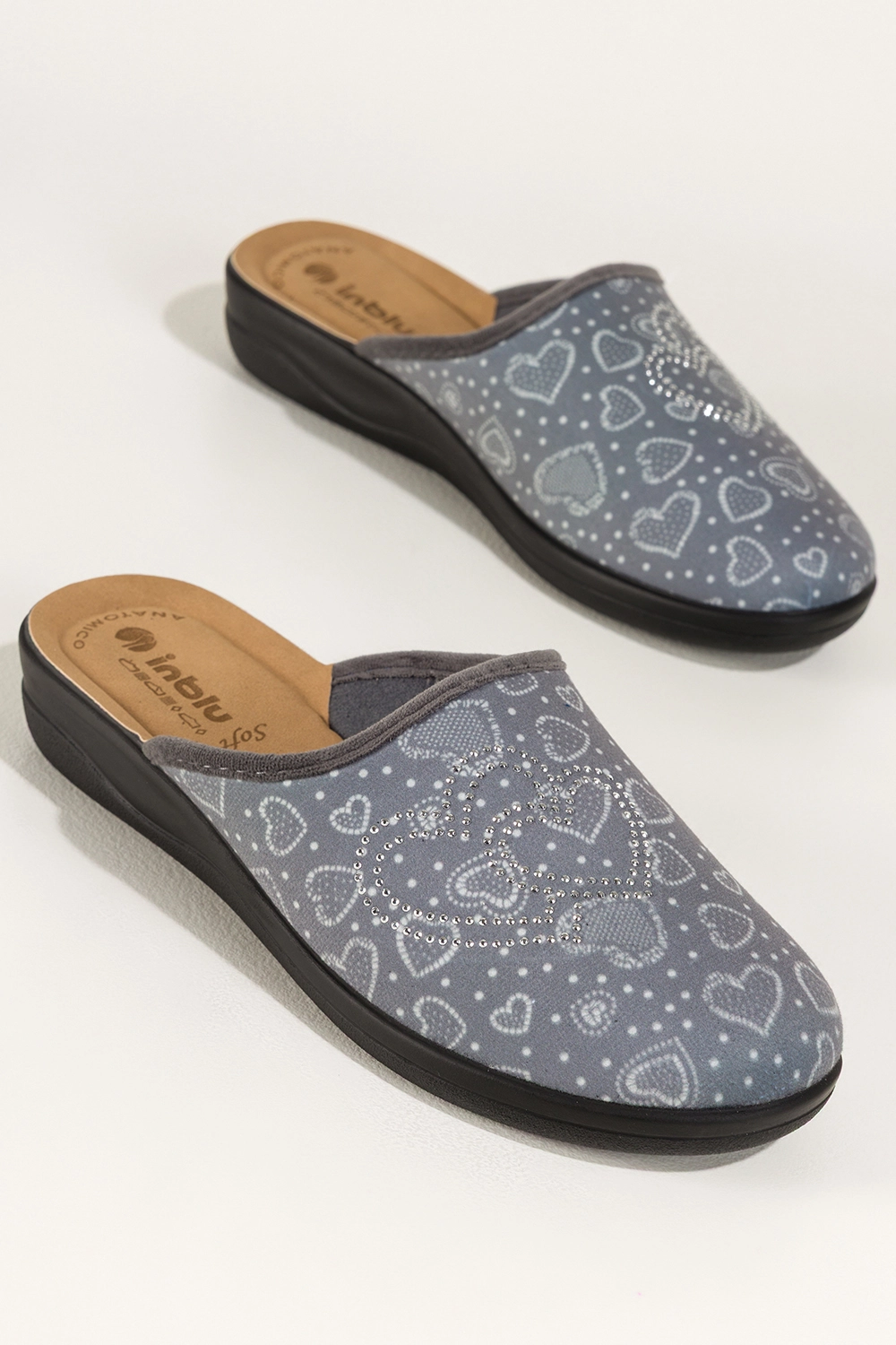 Szare kapcie damskie Inblu obuwie domowe serca z cyrkoniami wkładka soft XU989Y99