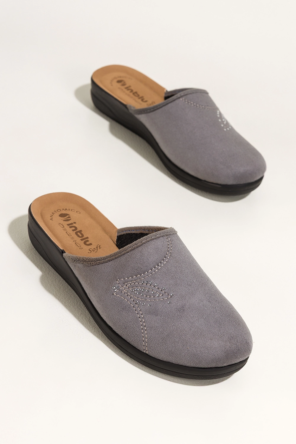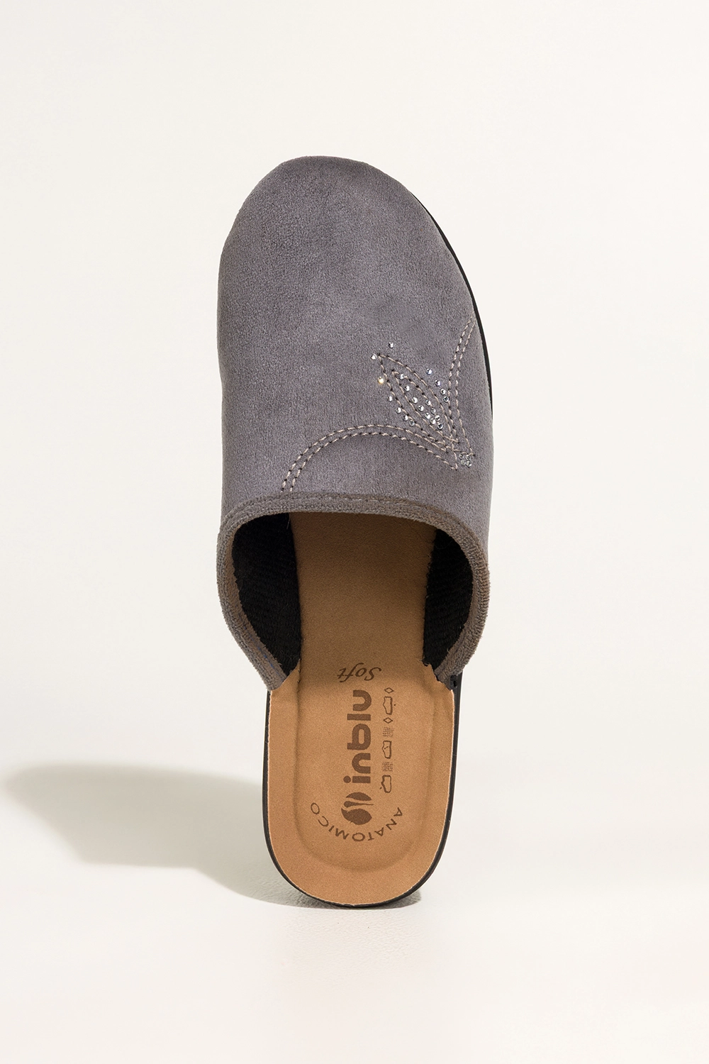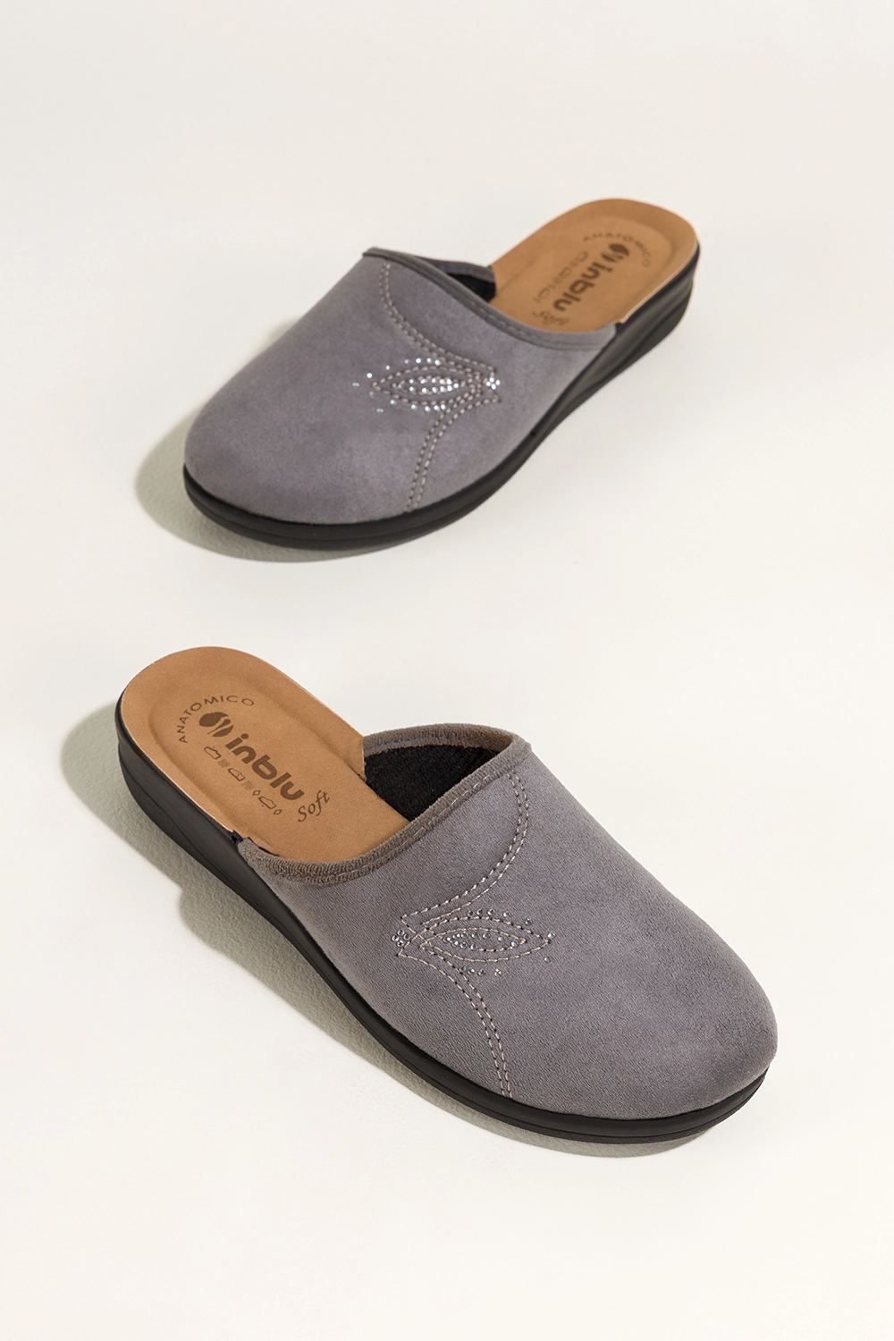 Szare kapcie damskie Inblu obuwie domowe z cyrkoniami wkładka soft model XU999951, synonim luksusu i wygody na co dzień. Wykonane z wysokogatunkowego materiału, zapewniają nie tylko ciepło, ale też oddychalność, dzięki czemu idealnie sprawdzą się przez cały rok. Miękka wkładka soft z ekologicznej skóry delikatnie otula stopę, oferując ulgę nawet po długim dniu. Subtelny, delikatny klin zapewnia naturalne ułożenie stopy i minimalizuje zmęczenie. Precyzyjne wykonanie to gwarancja trwałości i satysfakcji z zakupu.