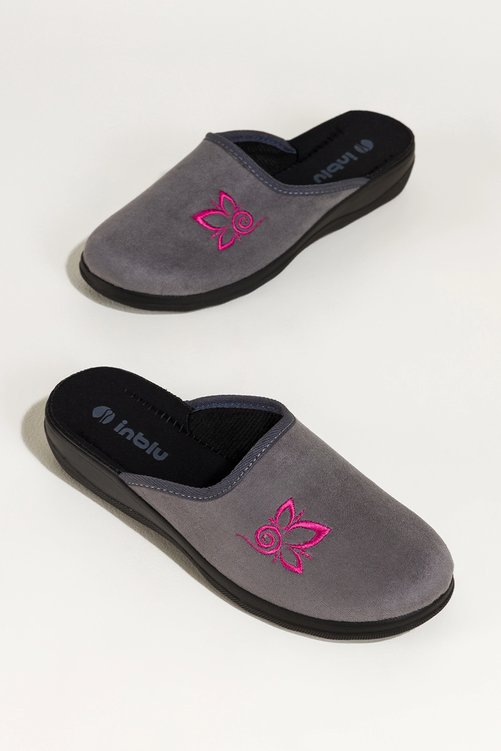 Szare kapcie damskie Inblu obuwie domowe z haftem model XF99997W, to synonim wygody. Wykonane z wysokogatunkowego materiału, gwarantują przyjemne otulenie stóp i trwałość na lata. Miękka wkładka z materiału delikatnie dopasowuje się do kształtu stopy, zapewniając komfort nawet podczas wielogodzinnego noszenia. Wsuwana konstrukcja pozwala na szybkie i wygodne zakładanie, idealne na szybkie chwile relaksu w domu po intensywnym dniu.