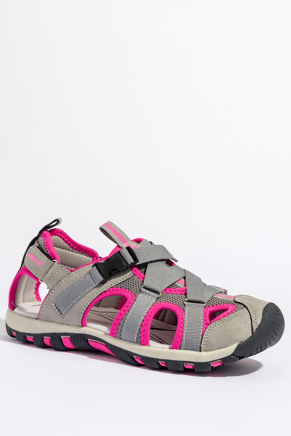 Funkcjonalność i unikalne detale wyróżniają ten model na tle innych sandałów dostępnych na rynku. Zakryta pięta oraz regulowane paski z klamrą zatrzaskową gwarantują pewne trzymanie stopy, a lekka konstrukcja pozwala na pełną swobodę ruchu. Dzięki odpowiedniemu profilowi podeszwy oraz elastycznemu żłobieniu, sandały amortyzują nierówności terenu i chronią stopy przed przeciążeniem. Dodatkowo, zastosowane materiały są łatwe w czyszczeniu, co sprawia, że sandały szybko wracają do pierwotnego wyglądu nawet po intensywnym użytkowaniu. To idealny wybór dla kobiet, które szukają wielozadaniowego obuwia – zarówno na górskie szlaki, jak i codzienne obowiązki.