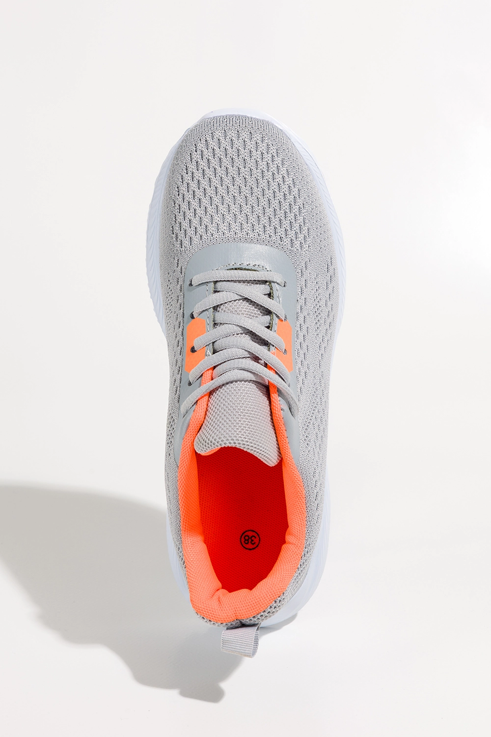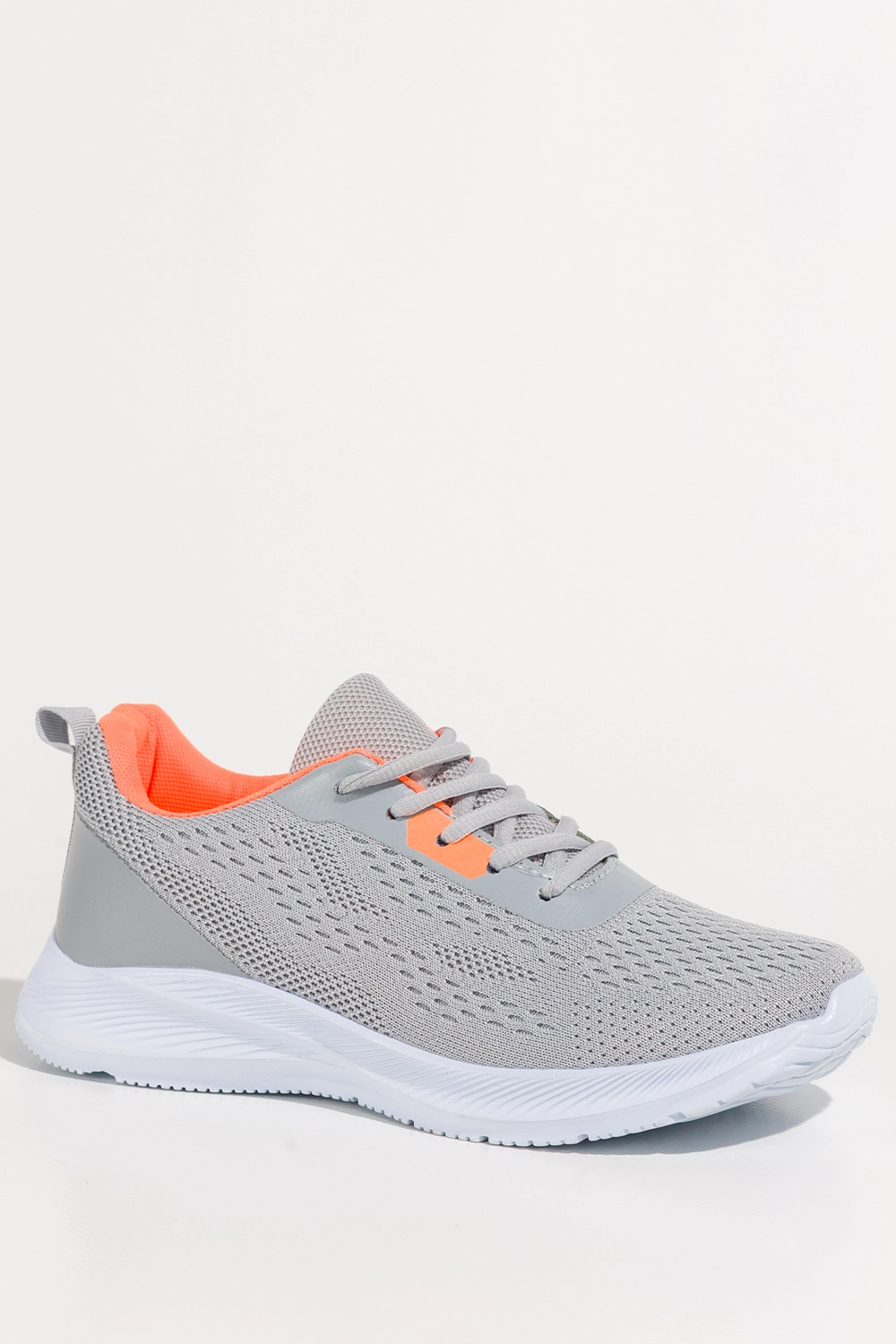 Szare sneakersy damskie buty sportowe na fitness elastyczna biała podeszwa pomarańczowe wstawki sznurowane Casu HL22122-5