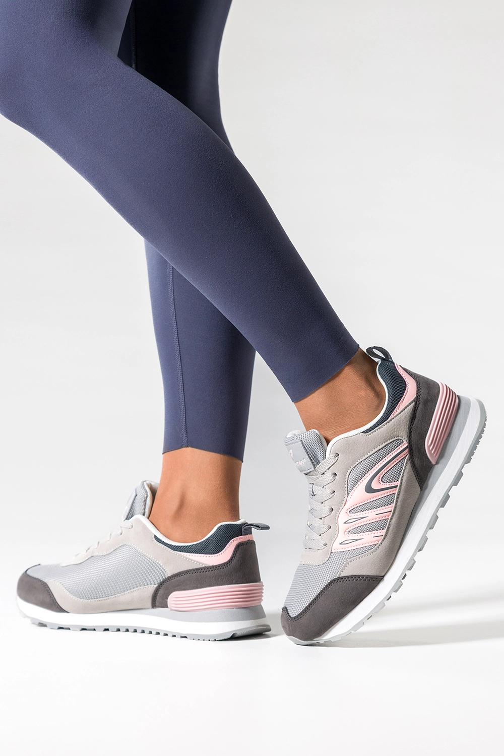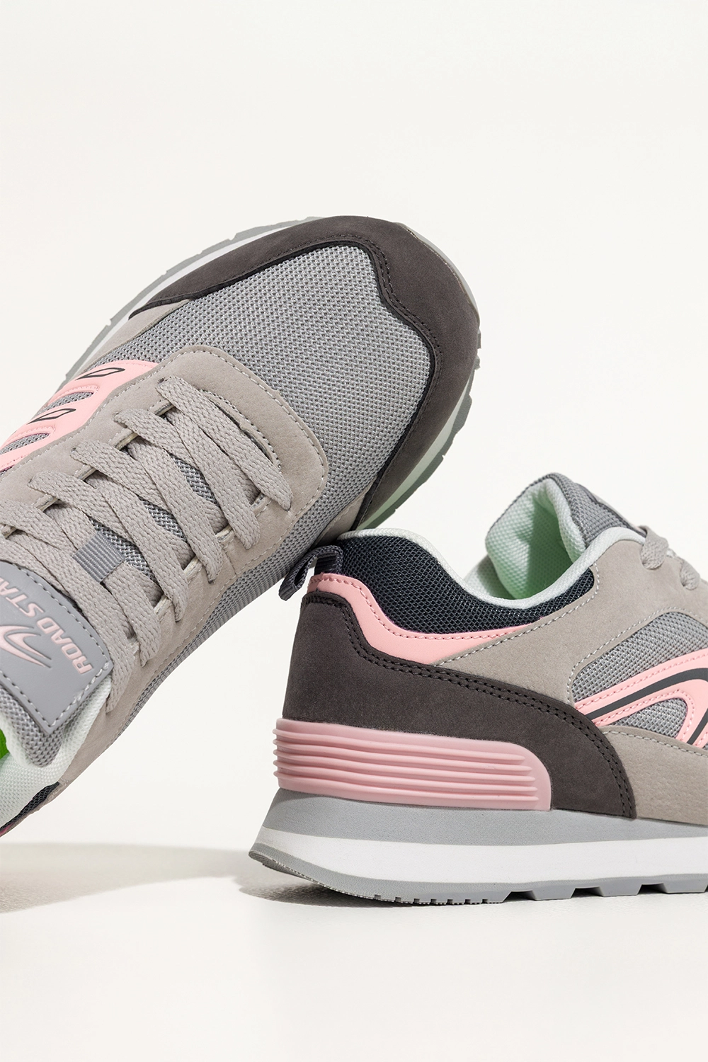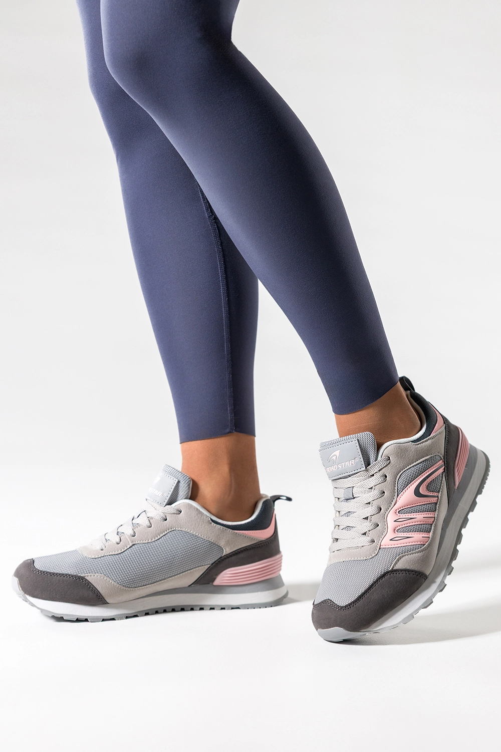Szare sneakersy damskie buty sportowe na żłobionej podeszwie sznurowane różowe wstawki Casu model 7398-0D to propozycja, która od pierwszego spojrzenia przyciąga nowoczesnym charakterem i subtelną kolorystyką. Stonowana szarość została przełamana delikatnymi różowymi wstawkami, dzięki czemu buty prezentują się lekko, świeżo i kobieco. Dynamiczna linia cholewki oraz żłobiona płaska podeszwa podkreślają sportowy styl, który idealnie wpisuje się w miejski rytm.