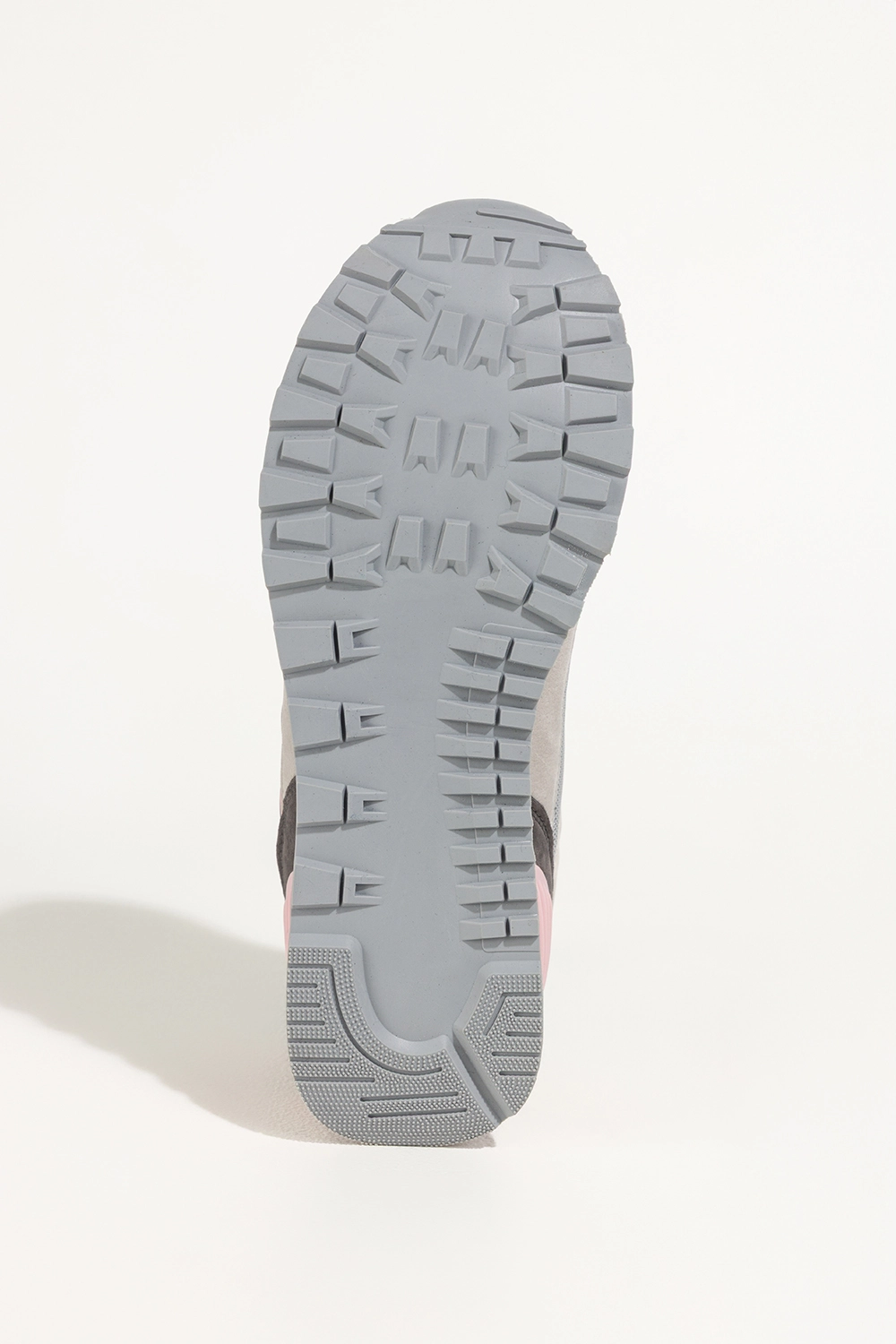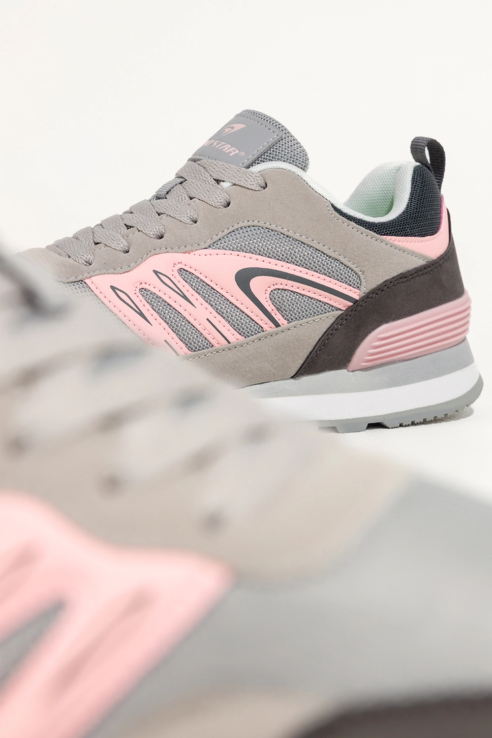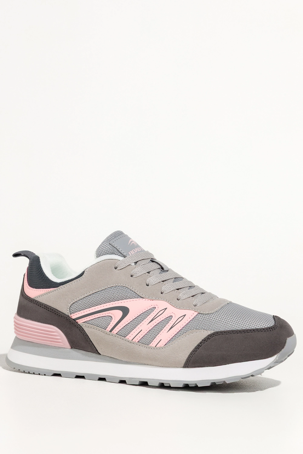 Szare sneakersy damskie buty sportowe na żłobionej podeszwie sznurowane różowe wstawki Casu model 7398-0D to propozycja, która od pierwszego spojrzenia przyciąga nowoczesnym charakterem i subtelną kolorystyką. Stonowana szarość została przełamana delikatnymi różowymi wstawkami, dzięki czemu buty prezentują się lekko, świeżo i kobieco. Dynamiczna linia cholewki oraz żłobiona płaska podeszwa podkreślają sportowy styl, który idealnie wpisuje się w miejski rytm.