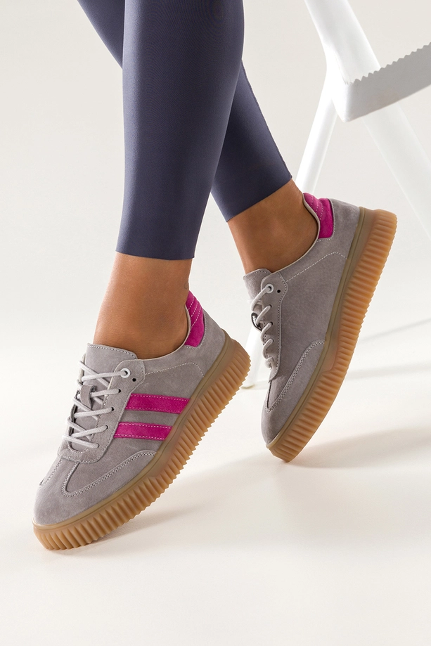 Stylizacyjna elastyczność i uniwersalność sprawiają, że to must-have każdej garderoby. Dzięki stonowanej szarości i przełamaniu jej energetyczną fuksją, te buty sportowe damskie świetnie komponują się zarówno z codziennym casualem – jeansami, dresami, legginsami – jak i bardziej odważnymi, streetwearowymi stylizacjami z sukienkami czy oversize’owymi marynarkami. To doskonały wybór na zakupy, uczelnię, spacer z psem, a nawet nieformalne spotkania towarzyskie. Ich ponadczasowy design i wyważona paleta barw pozwalają dopasować je zarówno do jasnych, jak i ciemnych elementów garderoby. Co więcej, cholewka wykonana z miękkiego zamszu doskonale sprawdza się w każdej porze roku – od wiosennych spacerów po jesienne wypady za miasto. Jedna para sneakersów, a tak wiele możliwości!