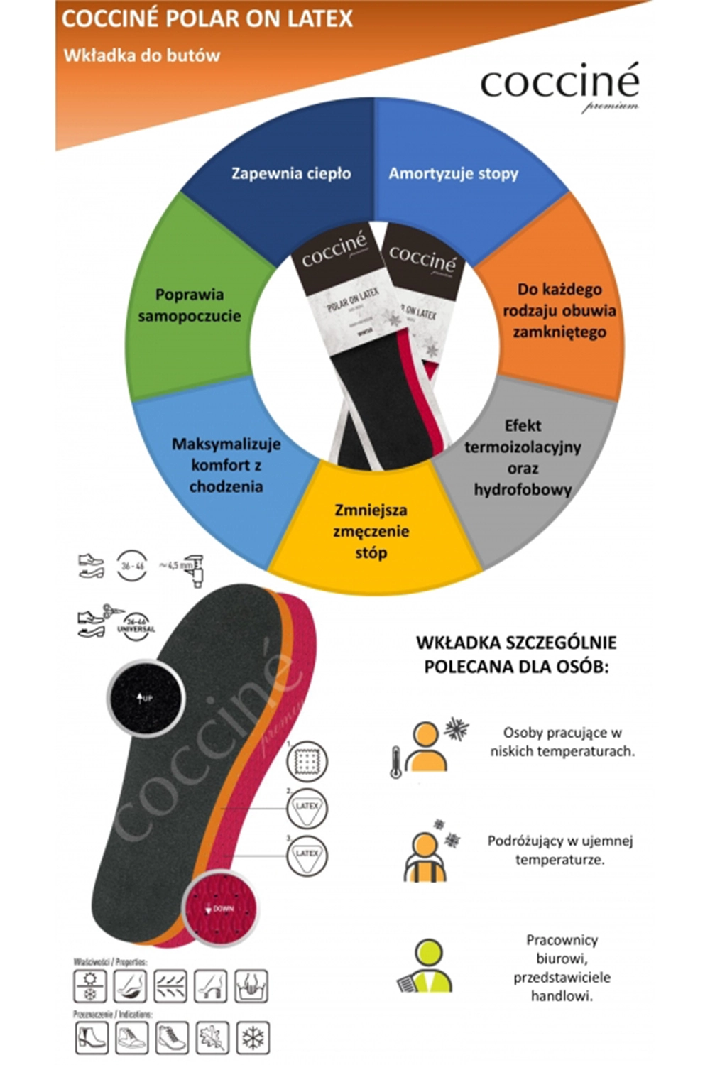 Wkładka polarowa Coccine Polar on Latex to idealne rozwiązanie dla osób poszukujących maksymalnego komfortu termicznego w chłodne dni. Miękka warstwa polaru otula stopę przyjemnym ciepłem, skutecznie chroniąc ją przed zimnem i zwiększając wygodę noszenia obuwia.