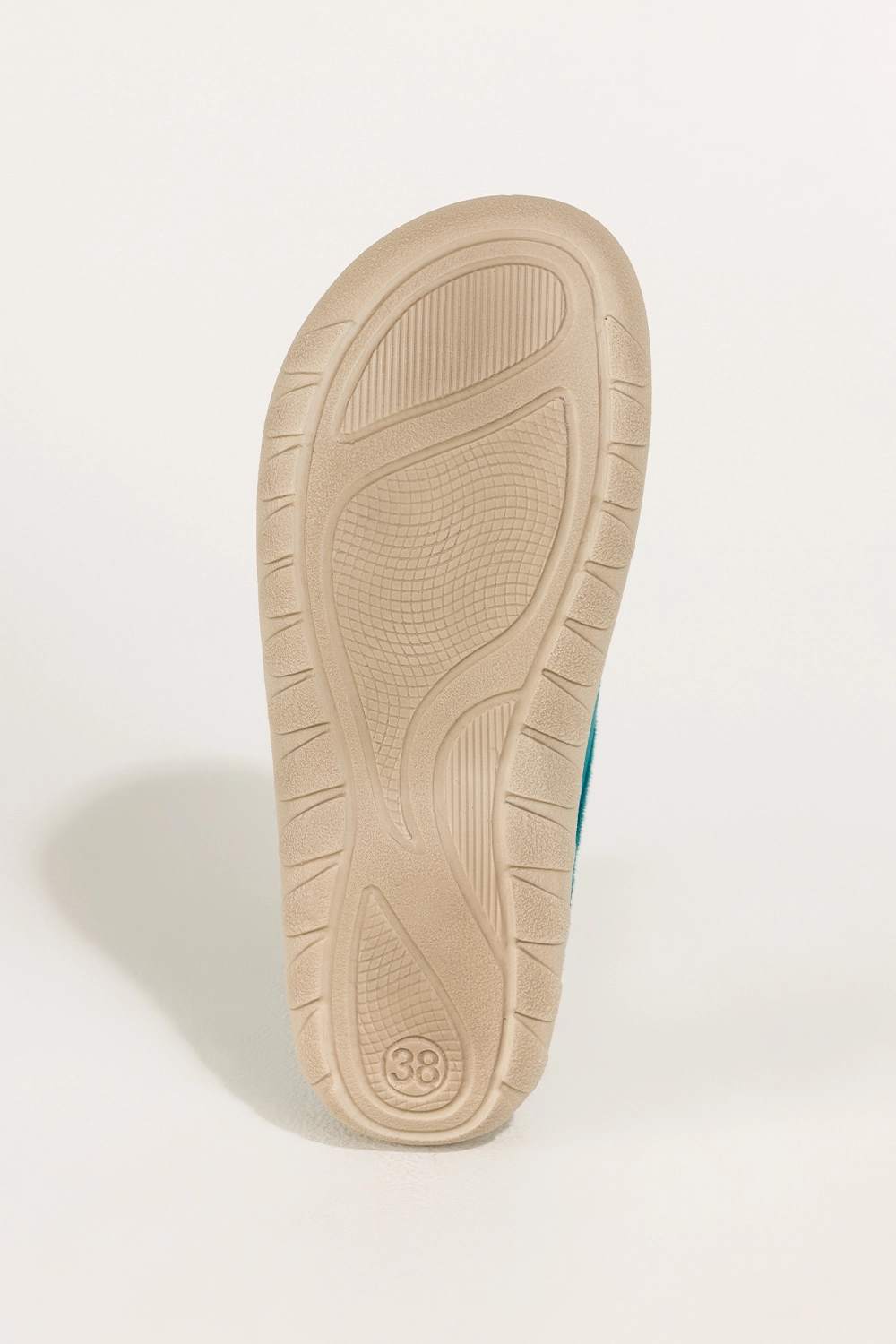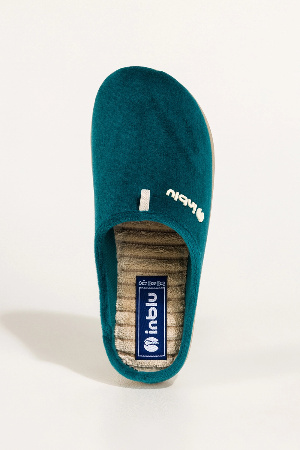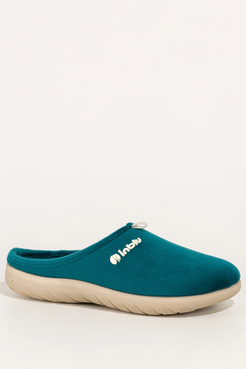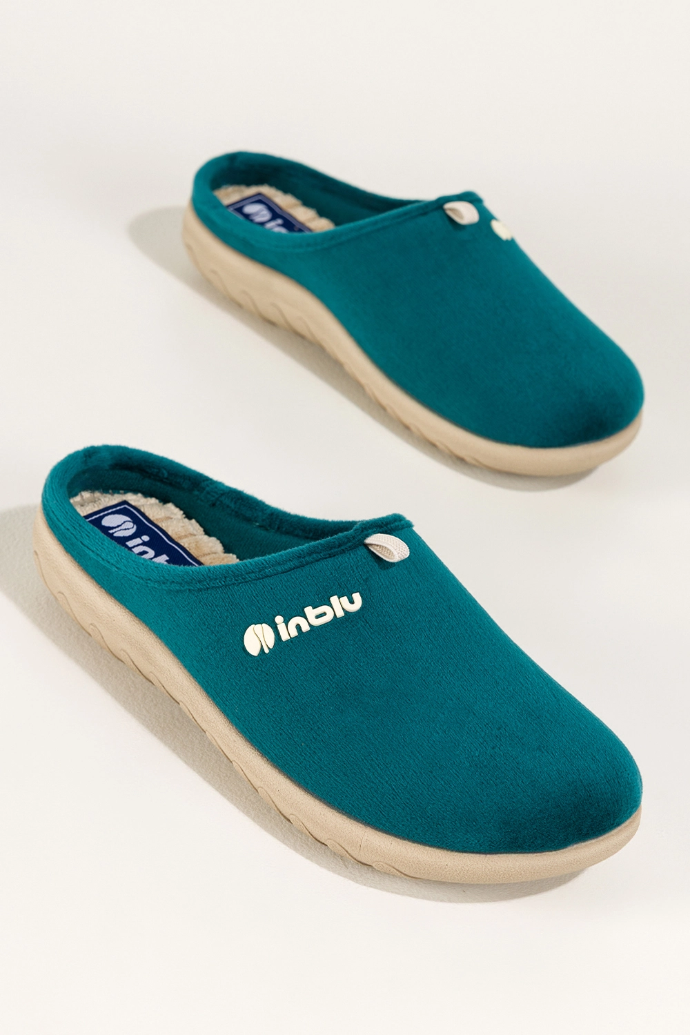 Zielone kapcie damskie Inblu obuwie domowe model VG999962 wykonane są z wysokogatunkowego, miękkiego materiału, który otula stopy przyjemnym ciepłem. Miękka wkładka z materiału dopasowuje się do kształtu stopy, zapewniając amortyzację i wygodę na każdym kroku. Płaska podeszwa gwarantuje stabilność oraz lekkość noszenia.