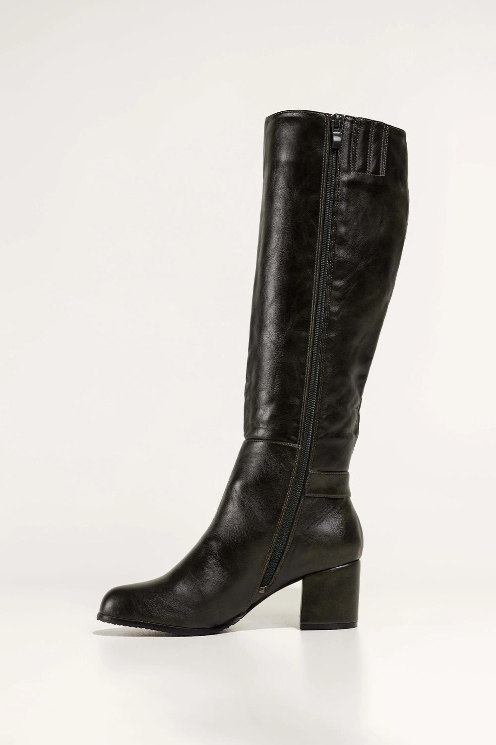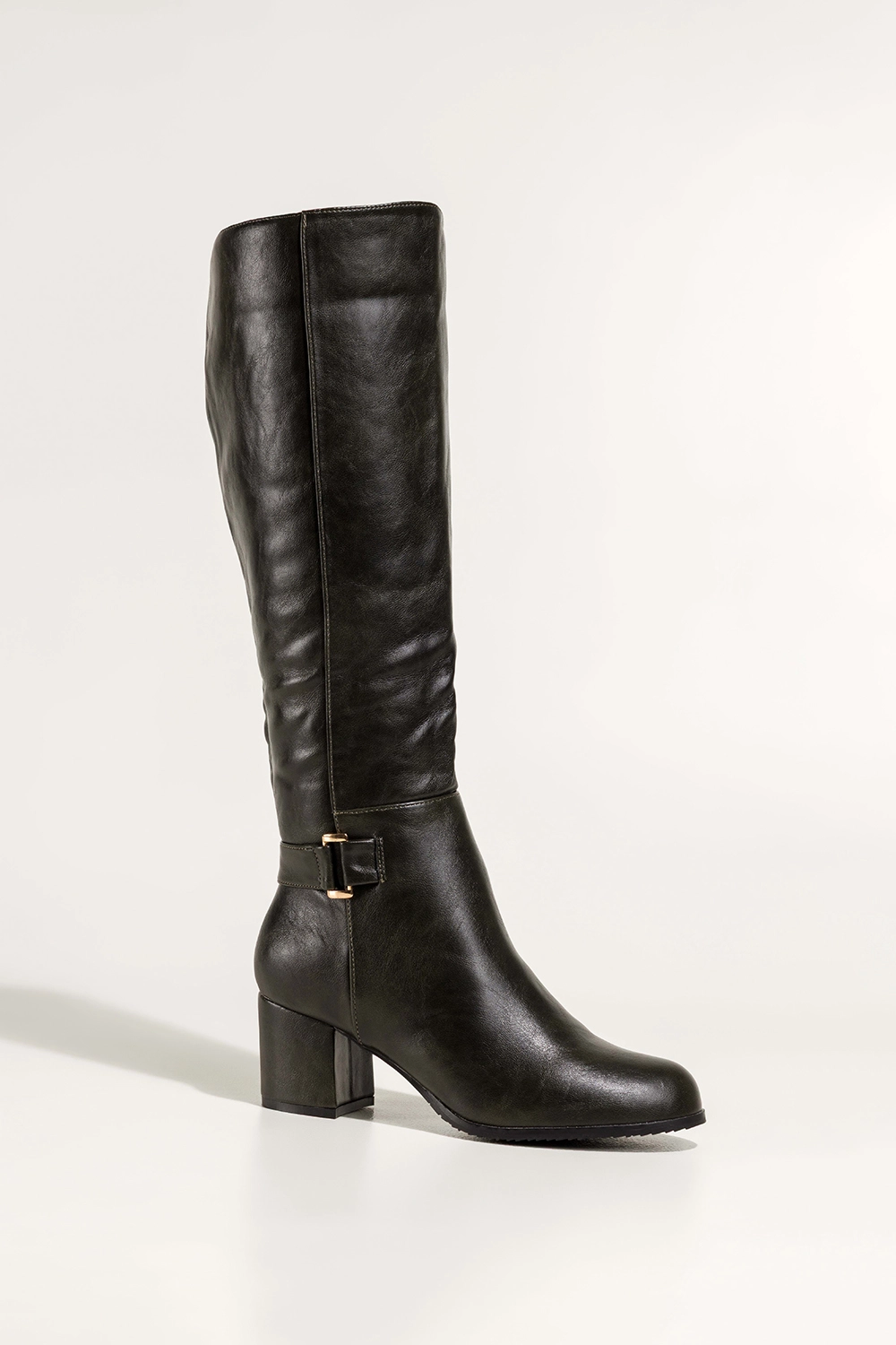 Głęboki, zielony kolor w połączeniu ze złotą ozdobą na pasku tworzy modny, luksusowy akcent, który sprawdzi się zarówno w codziennych stylizacjach, jak i podczas wyjątkowych okazji. Elastyczna guma po wewnętrznej stronie cholewki nie tylko ułatwia zakładanie, ale również doskonale dopasowuje się do kształtu łydki. Ten model świetnie komponuje się zarówno z wąskimi jeansami, jak i z wełnianymi sukienkami, tworząc stylizacje pełne charakteru.