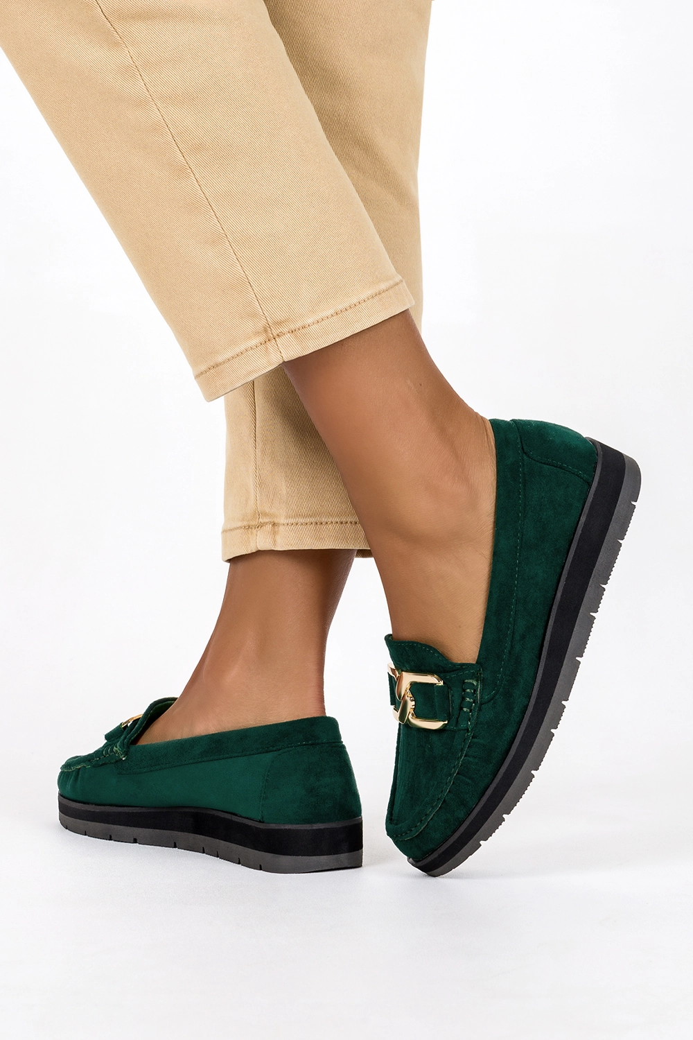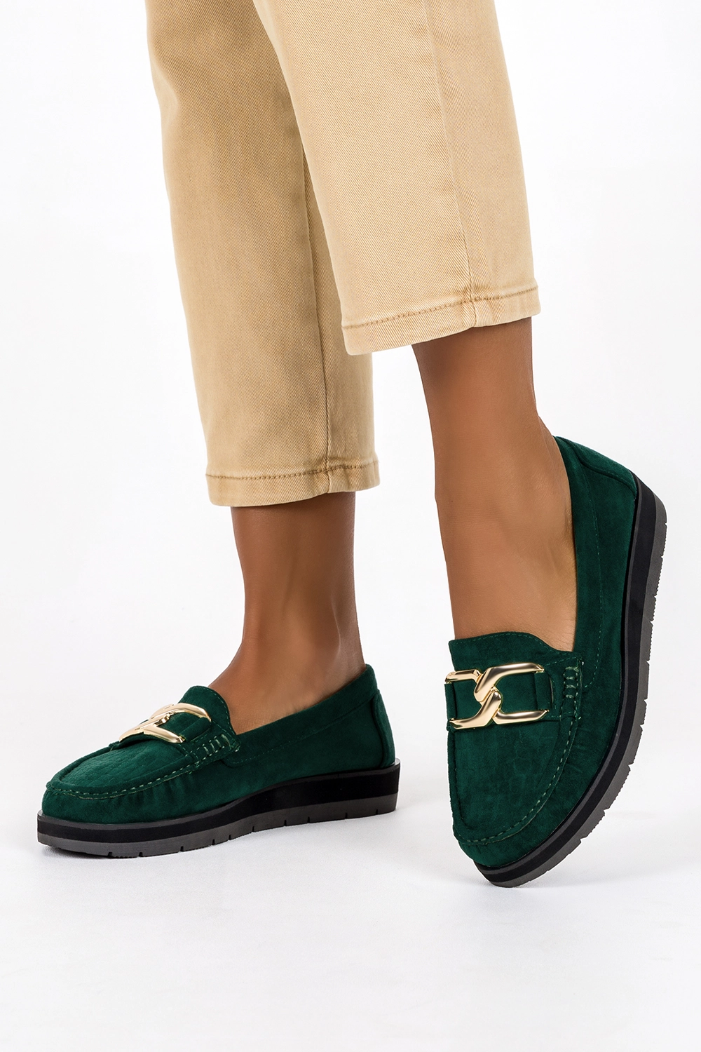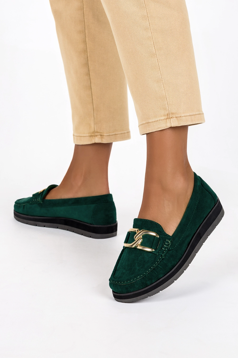 Zielone mokasyny z łańcuchem damskie ze skórzaną wkładką Casu D23WX5-G