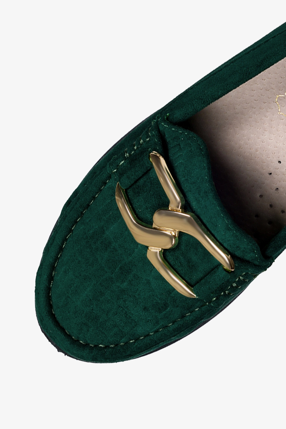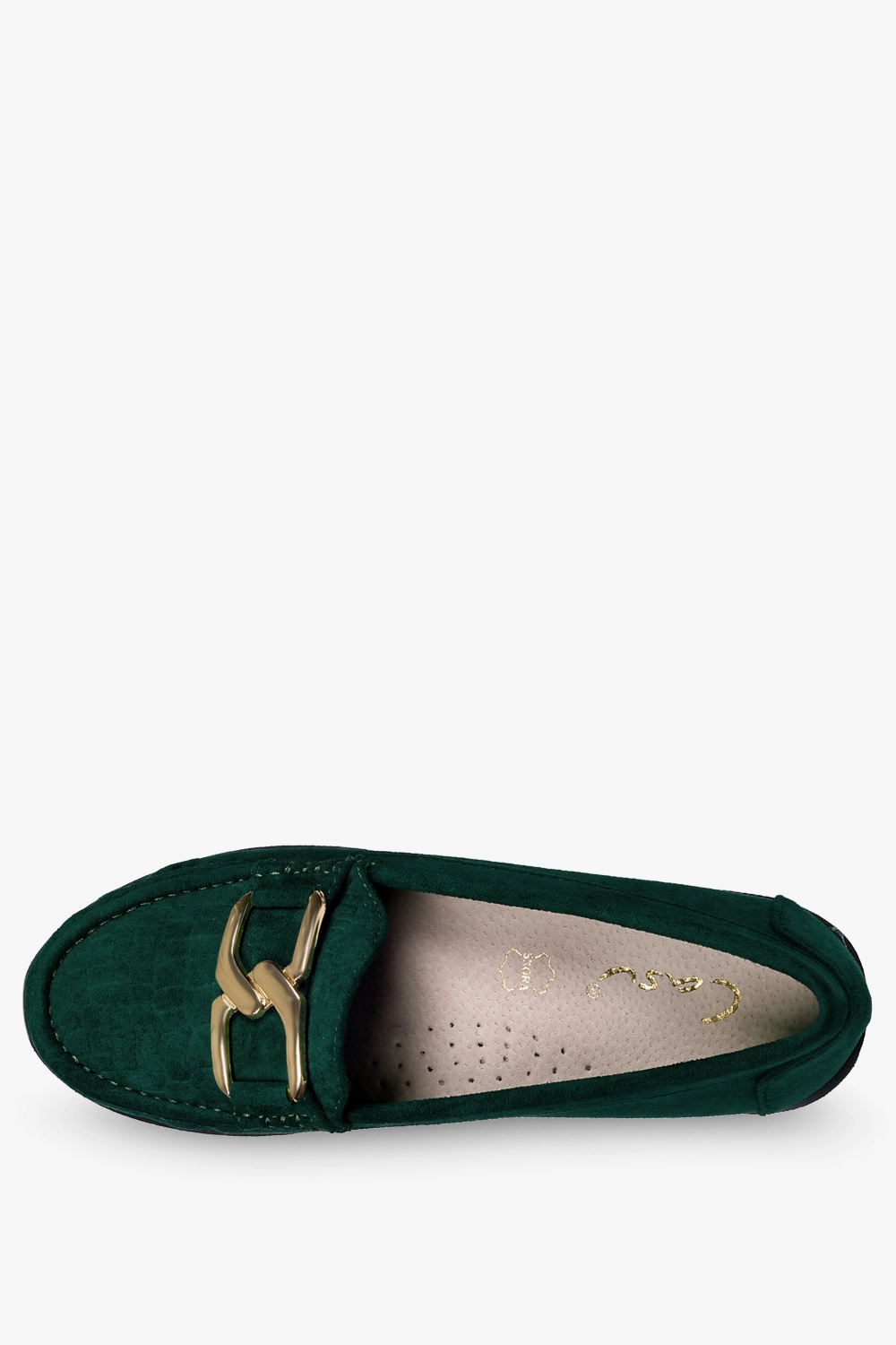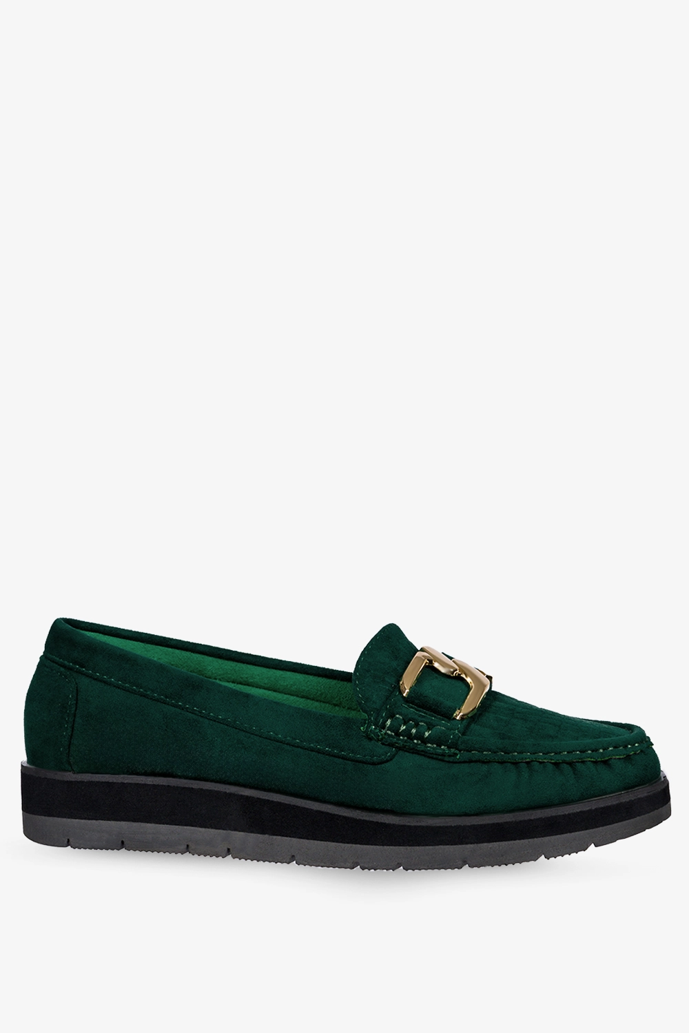 Zielone mokasyny z łańcuchem damskie ze skórzaną wkładką Casu D23WX5-G