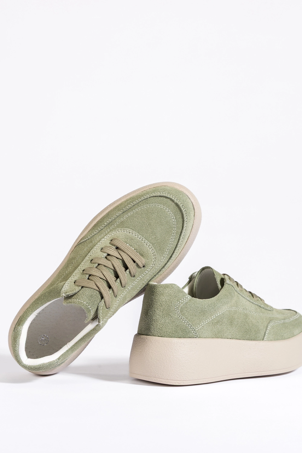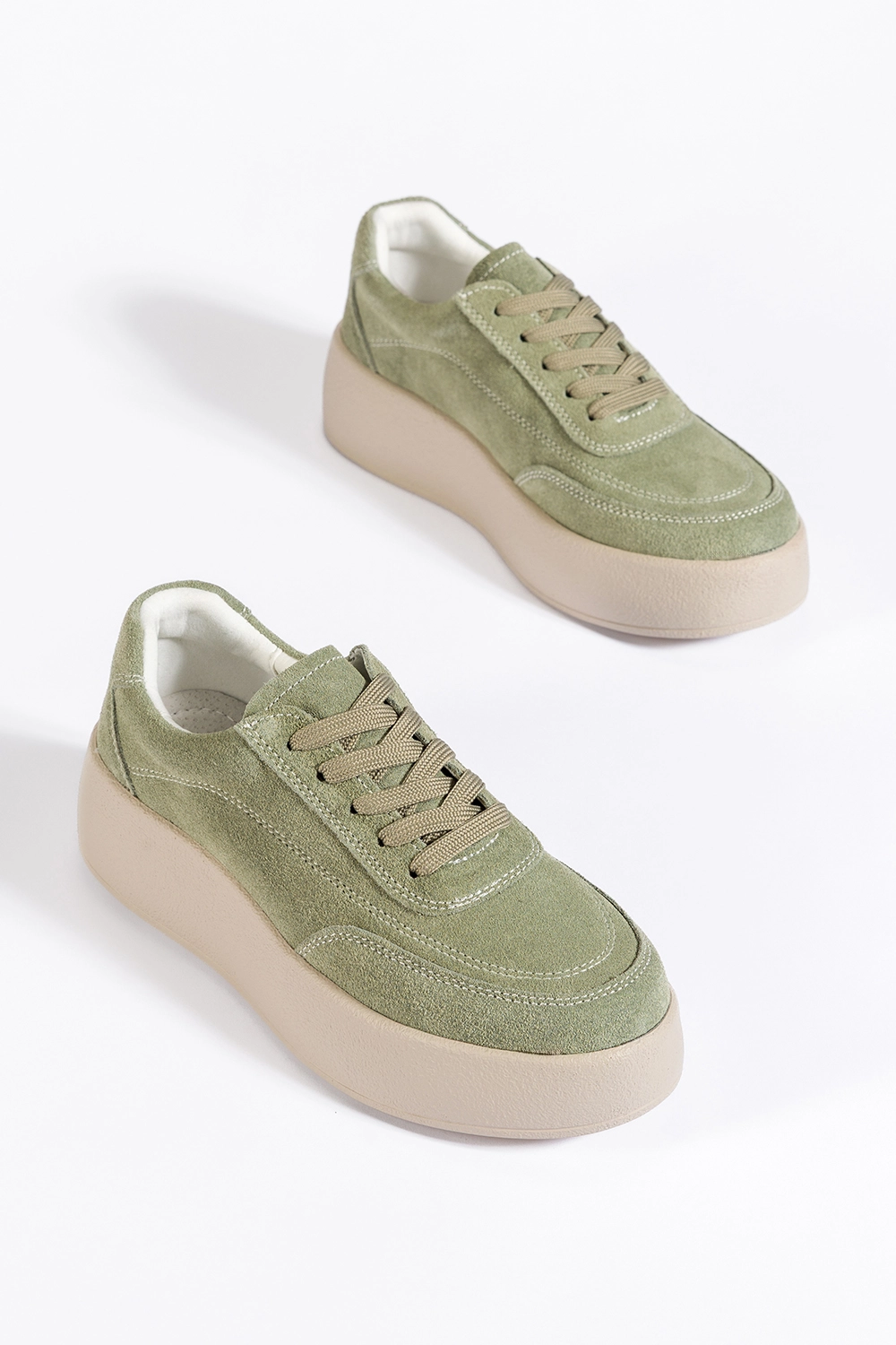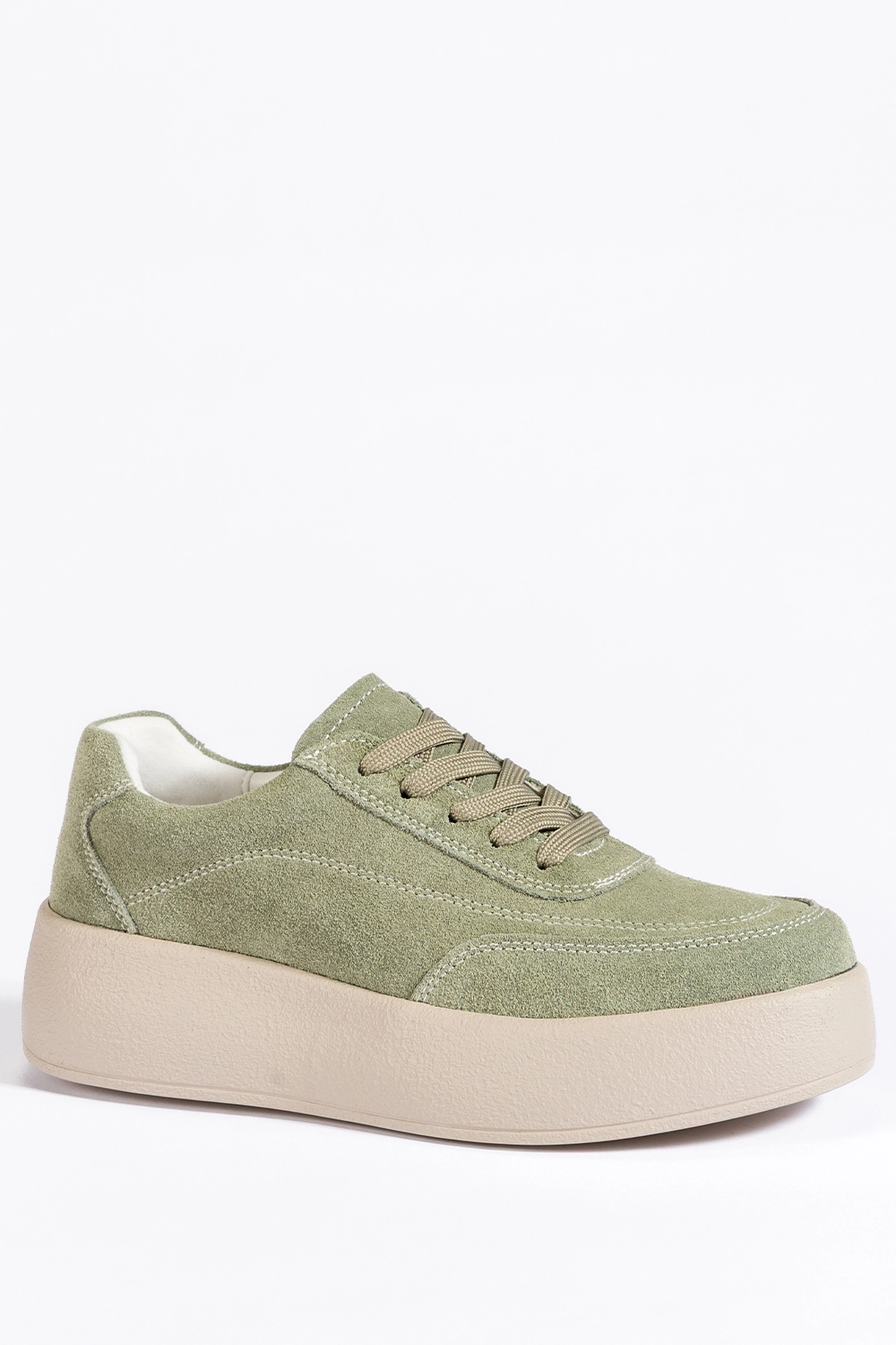 Zielone sneakersy skórzane damskie creepersy na platformie sznurowane Carla model 2323 to połączenie bezkompromisowej wygody, nowoczesnego stylu i najwyższej jakości wykonania. Ten unikalny model obuwia to idealna propozycja dla kobiet, które poszukują nie tylko komfortowych butów do codziennego noszenia, ale również stylowego dodatku podkreślającego indywidualny charakter. Wyróżniające się intensywnym, zielonym kolorem i subtelnym wykończeniem z miękkiej skóry zamszowej, creepersy przyciągają uwagę i wprowadzają świeżość do każdej stylizacji. Dzięki solidnej, beżowej platformie dodają sylwetce lekkości i optycznie wysmuklają nogi, zapewniając jednocześnie stabilność i amortyzację podczas chodzenia. To buty, które z łatwością dopasujesz zarówno do casualowego outfitu, jak i bardziej wyrazistych, streetwearowych looków.