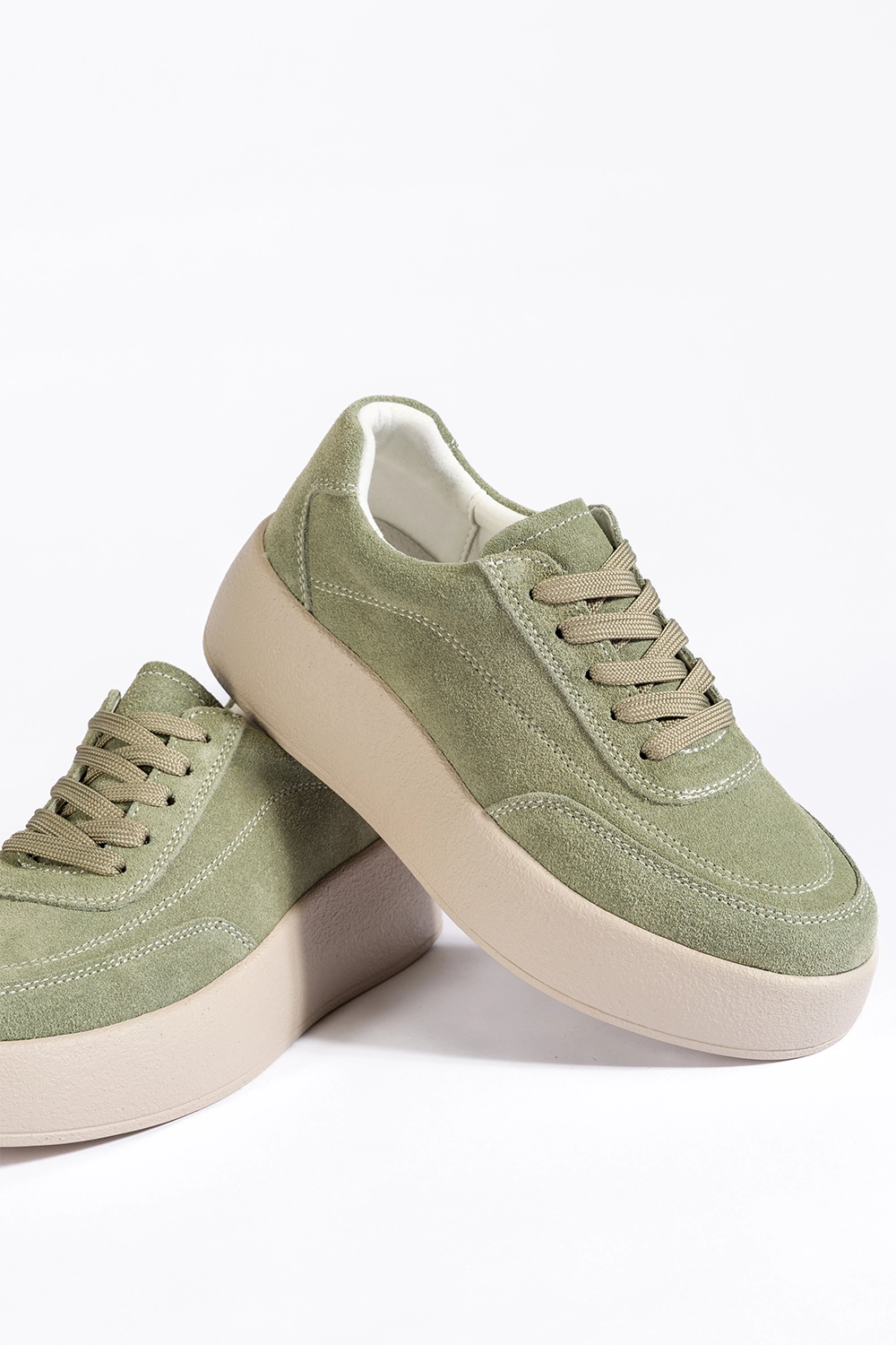 Stylizacyjna uniwersalność i nowoczesny design sprawiają, że te sneakersy z łatwością wpisują się w różnorodne trendy modowe. Dzięki klasycznej formie creepersów oraz oryginalnemu, zielonemu odcieniowi, buty idealnie komponują się z jeansami, spodniami typu jogger, plisowanymi spódnicami czy sukienkami midi. To doskonały wybór zarówno na codzienne wyjścia do pracy, jak i na spotkania towarzyskie czy weekendowe spacery po mieście. Beżowa platforma, będąca kontrastem dla zieleni cholewki, nadaje butom nowoczesny charakter, a jednocześnie subtelnie wyróżnia je spośród innych modeli dostępnych na rynku. Buty te pozwalają wyrazić siebie – są odważne, a zarazem eleganckie. To must-have dla kobiet, które cenią niezależność i pragną być zauważone.