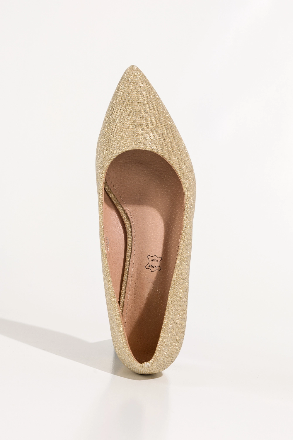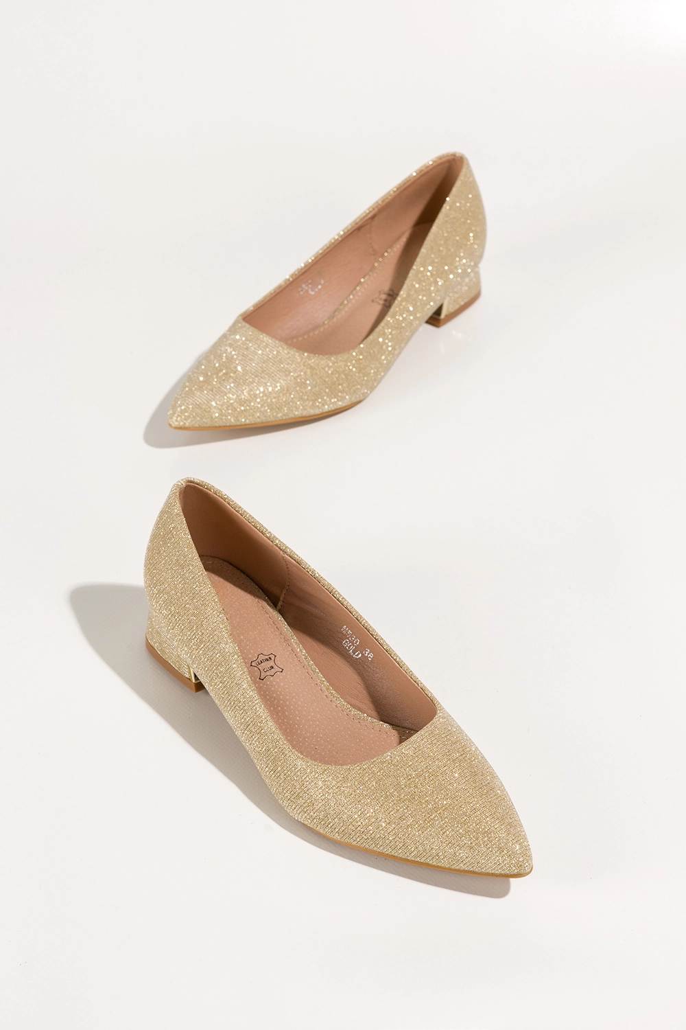 Stylizacje i uniwersalność – obuwie na każdą okazję. Złote brokatowe baleriny to idealny wybór zarówno na co dzień, jak i na bardziej formalne okazje. Ich uniwersalność sprawia, że doskonale komponują się zarówno z klasyczną sukienką, eleganckim garniturem, jak i z casualowymi jeansami czy letnią spódnicą. Baleriny te będą znakomitym uzupełnieniem stylizacji na wesele, bankiet, chrzciny, randkę czy kolację firmową. Dzięki subtelnemu połyskowi i eleganckiemu kształtowi, z łatwością nadadzą szyku nawet najprostszej stylizacji. Wsuwany fason gwarantuje łatwe zakładanie i zdejmowanie, a szpiczasty nosek optycznie wydłuża nogi, podkreślając kobiecą sylwetkę. To propozycja dla kobiet w każdym wieku, które chcą poczuć się pięknie i wyjątkowo – bez względu na okazję.