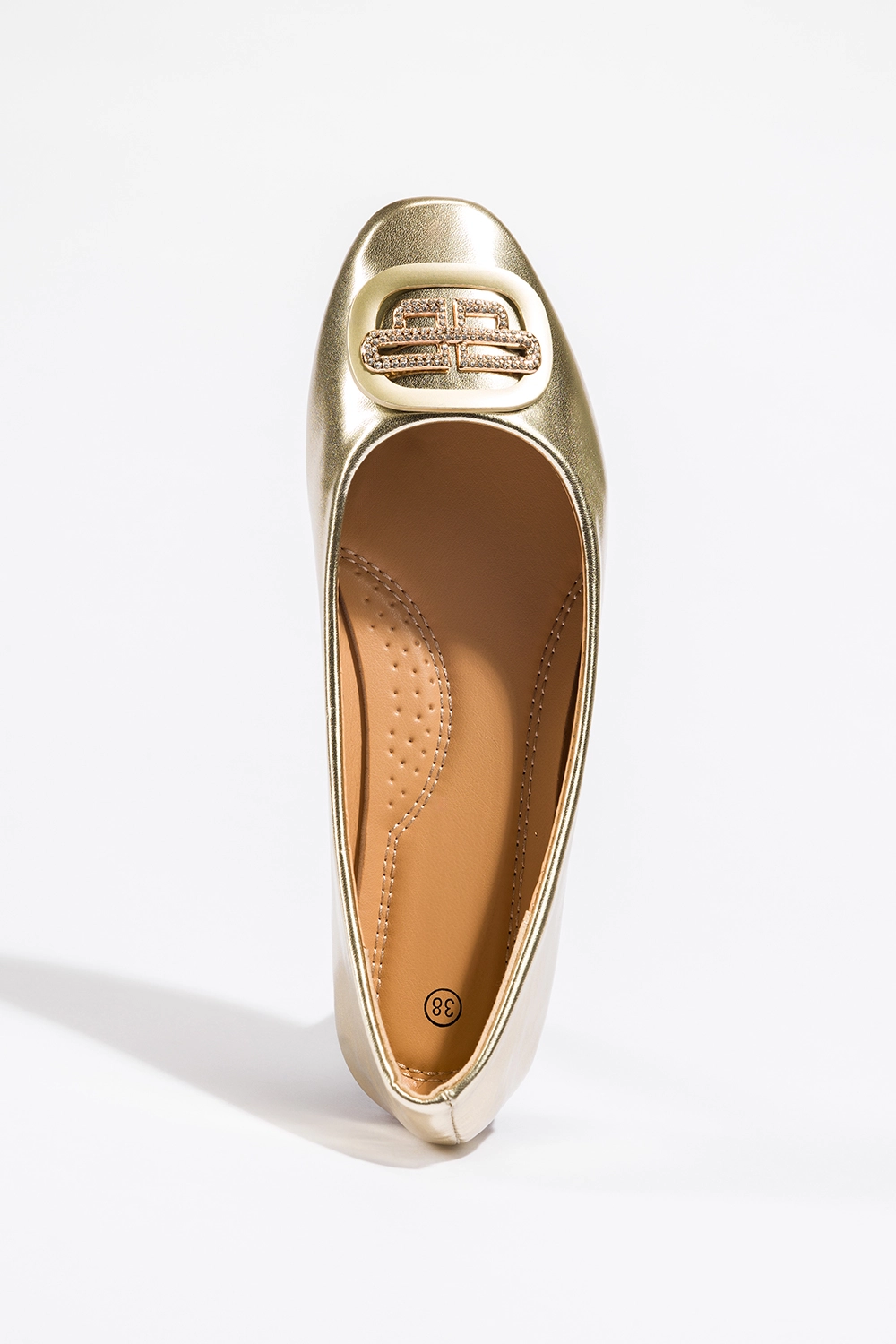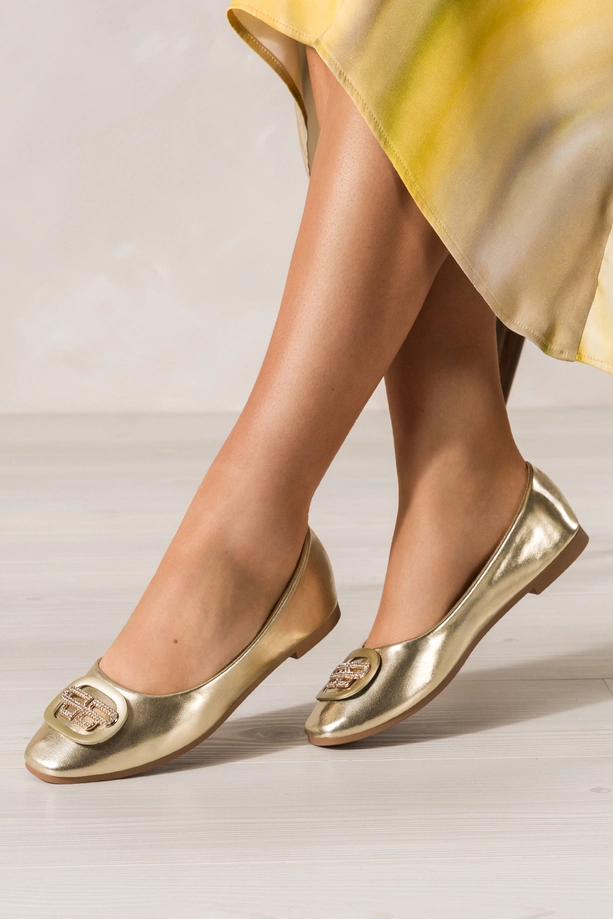 Te wyjątkowe baleriny w kolorze złota doskonale komponują się zarówno z codziennymi, jak i bardziej eleganckimi zestawami. Możesz je nosić z klasycznymi jeansami i białą koszulą, aby dodać stylizacji odrobinę luksusu, lub zestawić je z elegancką sukienką, podkreślając swój wyjątkowy gust. Ich minimalistyczny, ale efektowny design sprawia, że są świetnym wyborem na wesele, randkę, spotkanie biznesowe czy rodzinne uroczystości. Kwadratowy nosek dodaje im nowoczesnego charakteru, a ozdobna aplikacja z cyrkonii subtelnie przyciąga wzrok i dodaje blasku. Jeśli szukasz obuwia, które podkreśli Twój styl i doda Ci pewności siebie, te baleriny będą doskonałym wyborem.