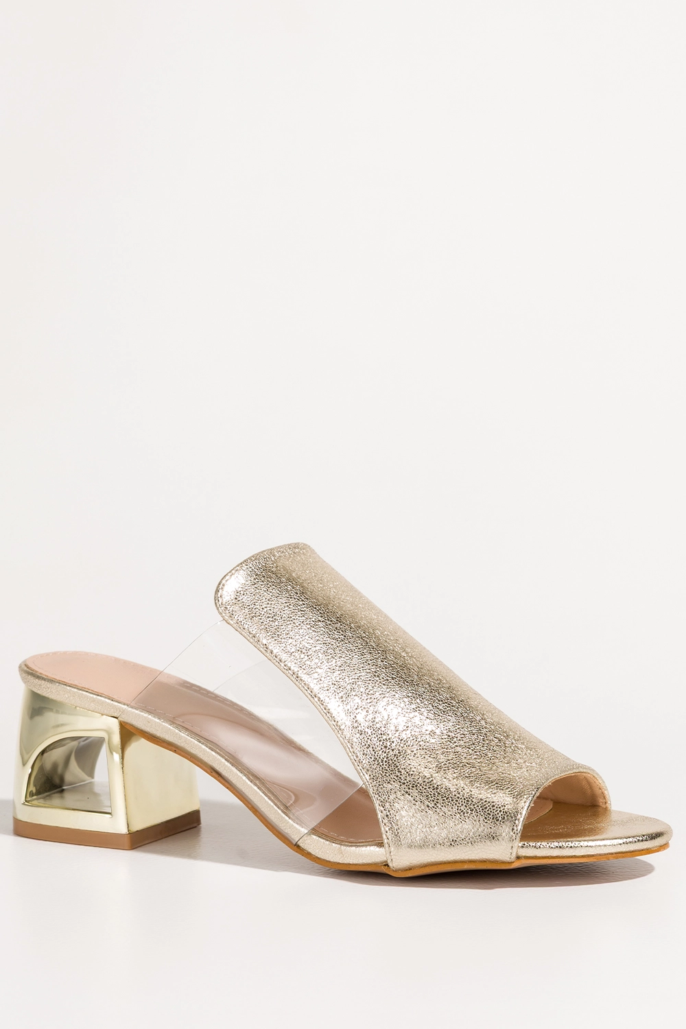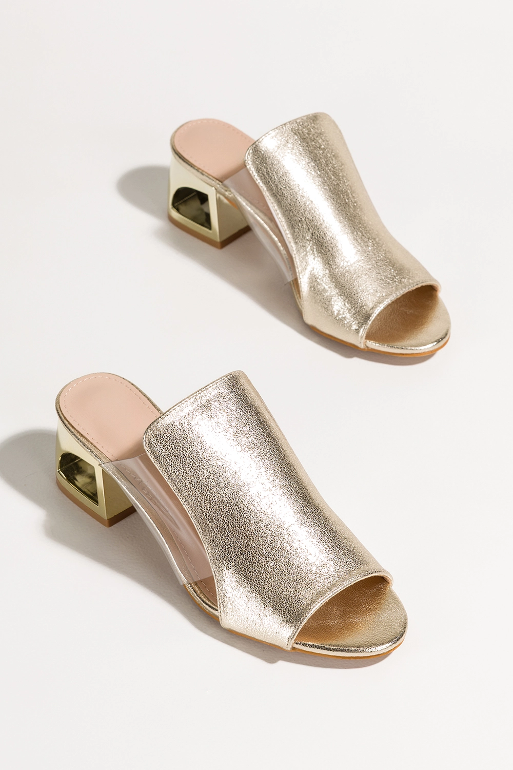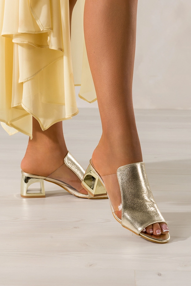 Złote klapki damskie błyszczące na ozdobnym klocku transparentne wstawki Carla model M500P to doskonałe połączenie luksusu, nowoczesnego designu i funkcjonalności, które czyni je absolutnym must-have każdej modnej kobiety. Wykonane z wysokogatunkowej skóry ekologicznej, klapki te nie tylko przyciągają wzrok swoim olśniewającym wyglądem, ale także oferują wysoki komfort noszenia nawet przez cały dzień. Ich wyrafinowany styl w połączeniu z praktycznymi rozwiązaniami sprawia, że są idealnym wyborem zarówno na wyjątkowe okazje, jak i do codziennych stylizacji. Ozdobny złoty obcas w formie klocka z eleganckimi wycięciami to element, który nie tylko dodaje charakteru, ale także zapewnia stabilność i wygodę. Transparentne wstawki po bokach cholewki podkreślają nowoczesny charakter obuwia, dodając mu lekkości i finezji.
