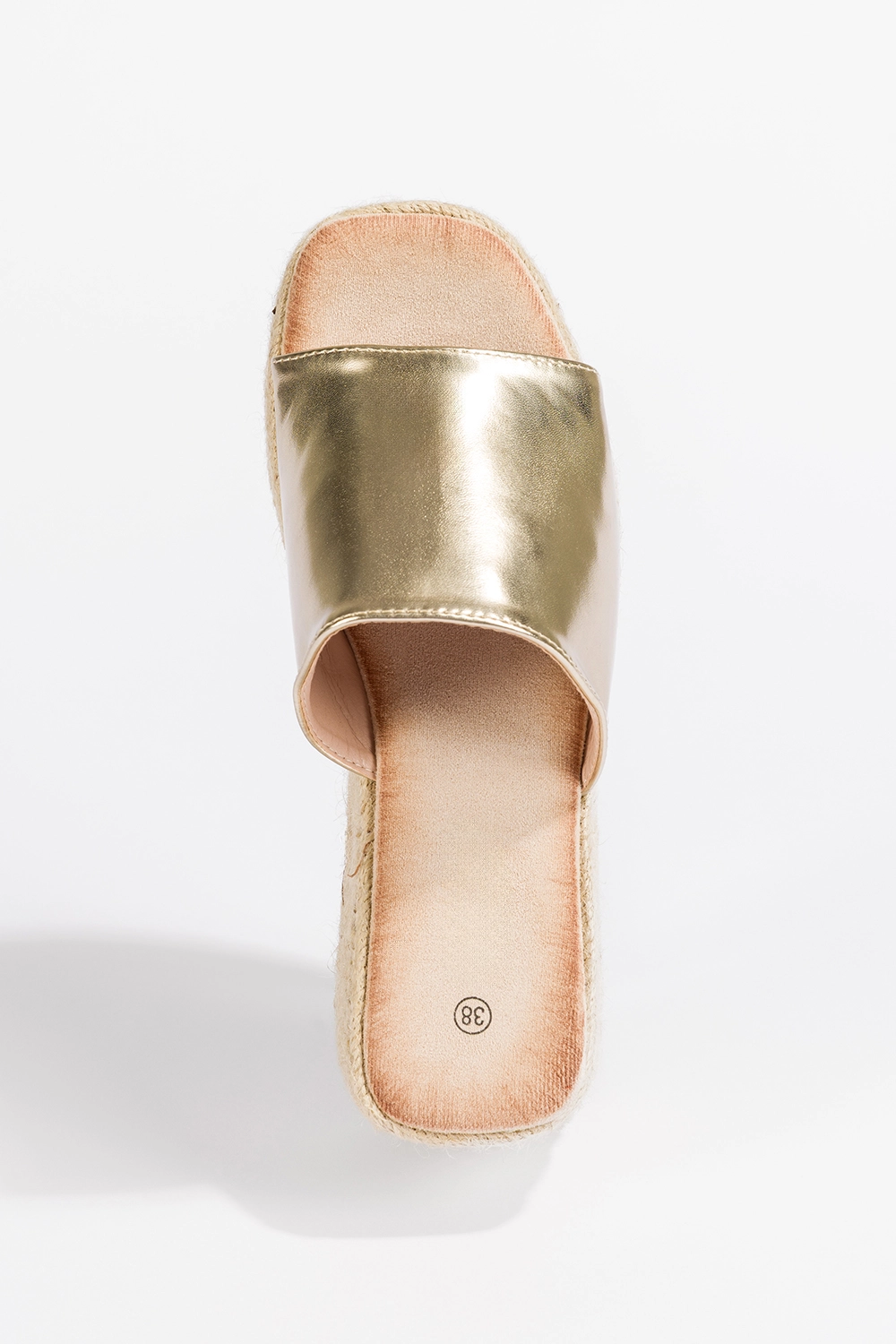 Złote klapki damskie espadryle na koturnie Carla 100-401