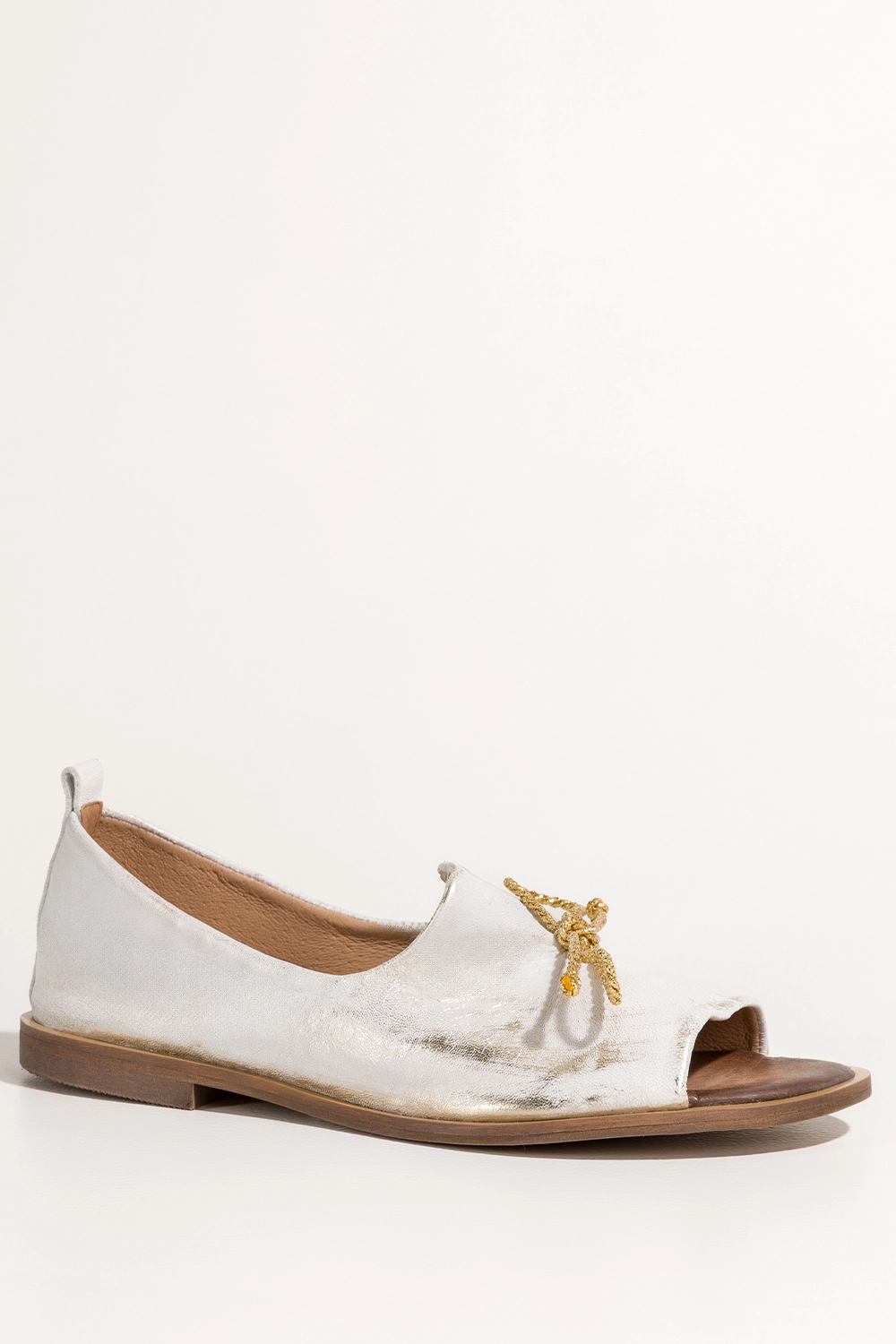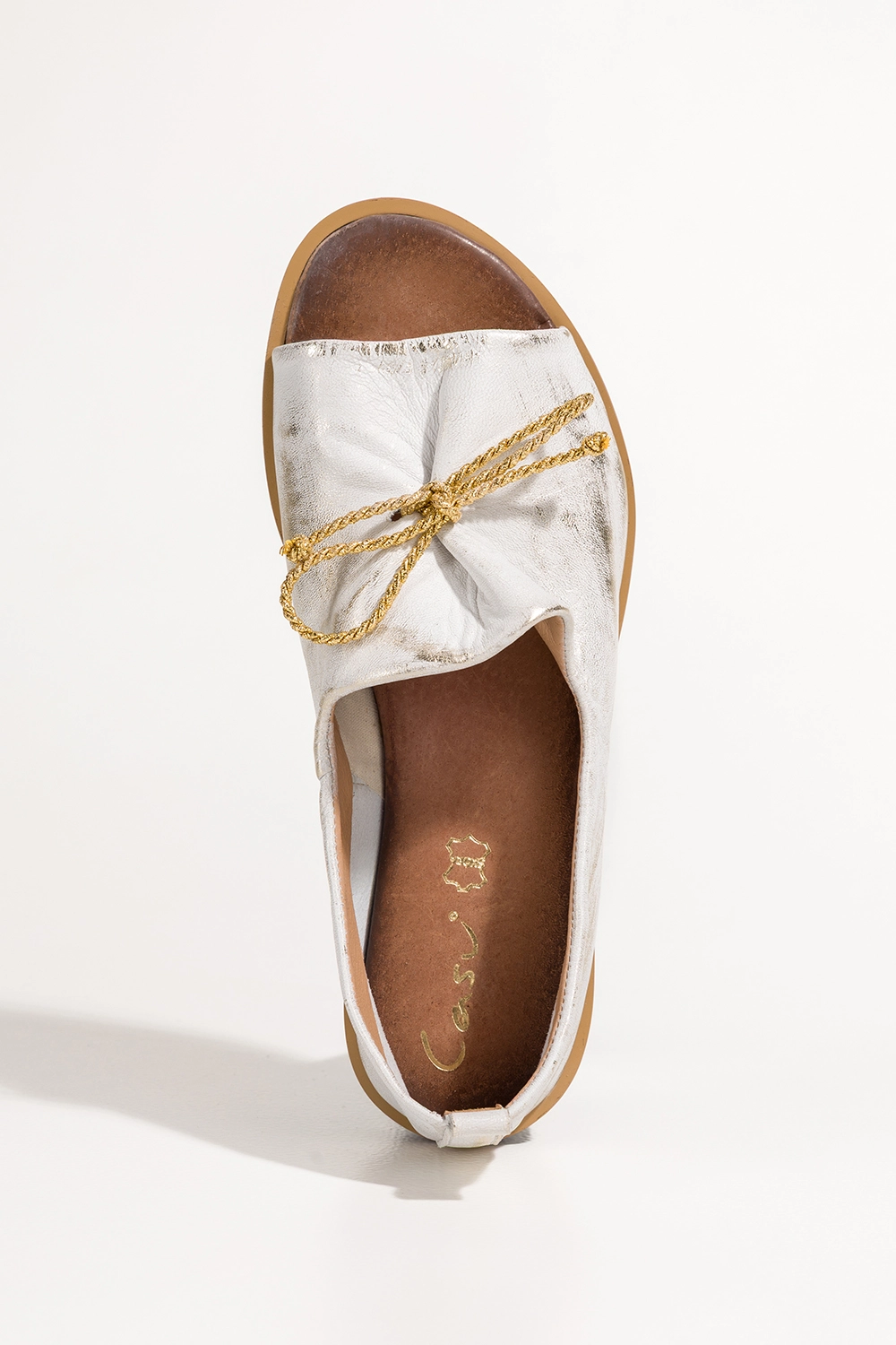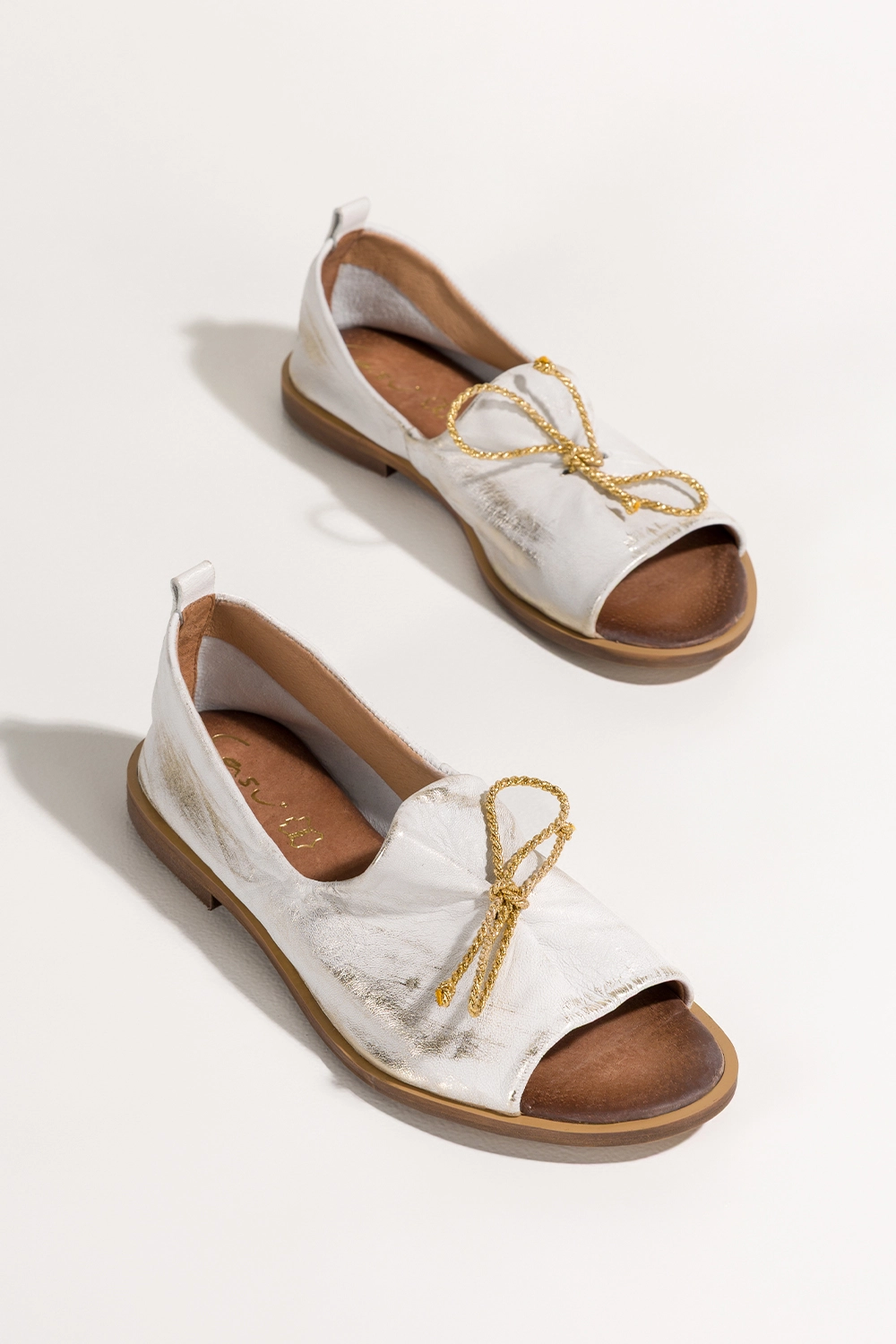 Złote sandały skórzane damskie przecierane zabudowane z kokardą PRODUKT POLSKI Casu 2660-004