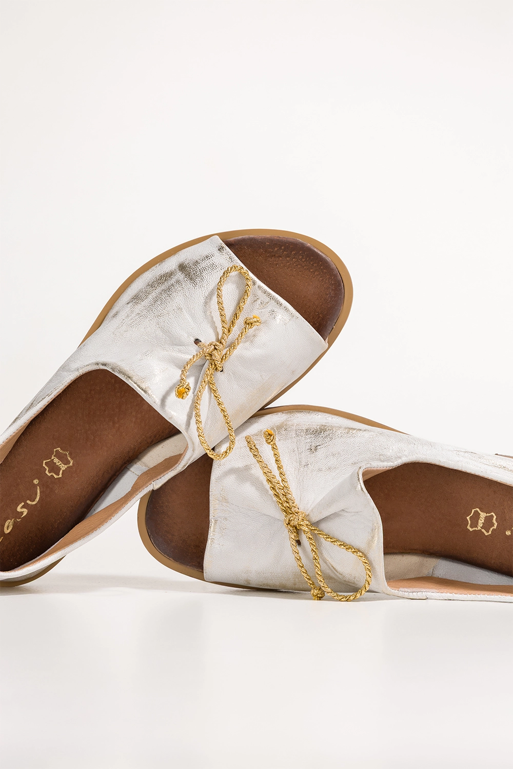Złote sandały skórzane damskie przecierane zabudowane z kokardą Casu model 2660-004 to kwintesencja elegancji i kobiecego wdzięku w nowoczesnym wydaniu. Wykonane z wysokogatunkowej, miękkiej skóry naturalnej, zapewniają nie tylko wyjątkowy komfort noszenia, ale także doskonałą trwałość i odporność na codzienne użytkowanie. Ich charakterystyczna przecierana złota cholewka przyciąga spojrzenia i dodaje całości unikalnego, luksusowego charakteru. Model ten zaprojektowano z myślą o kobietach ceniących połączenie klasyki z nowoczesnym twistem – to obuwie, które odnajdzie się zarówno na ważnych uroczystościach, jak i podczas eleganckich wyjść wieczorowych.