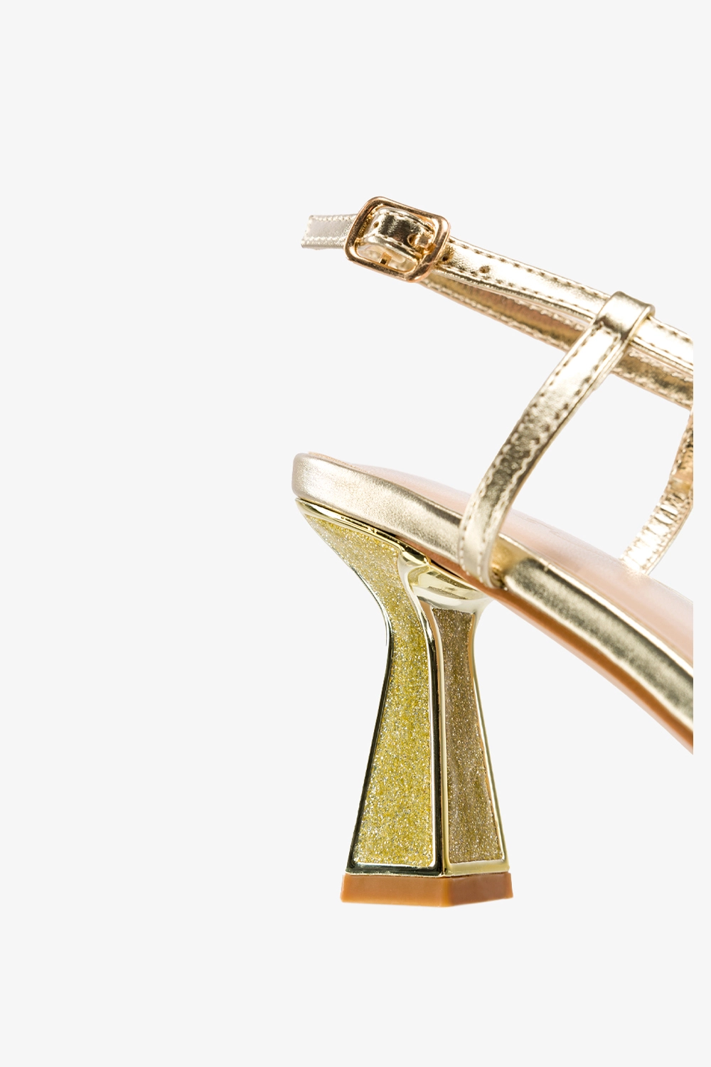 Sandały tworzone z myślą o kobietach, które nie uznają kompromisów w kwestii jakości. Wykonane z wysokogatunkowej skóry ekologicznej, zapewniają trwałość i komfort użytkowania, nawet podczas długotrwałego noszenia. Ich wyjątkowy design z ozdobnym obcasem w kształcie kieliszka nadaje obuwiu nietuzinkowego charakteru, wyróżniając je na tle innych modeli. Obcas ten nie tylko przyciąga wzrok, ale również gwarantuje stabilność, co sprawia, że buty są wygodne nawet podczas całonocnych imprez. Zapięcie na klamerkę umożliwia precyzyjne dopasowanie, zapewniając wygodę przy każdym kroku.