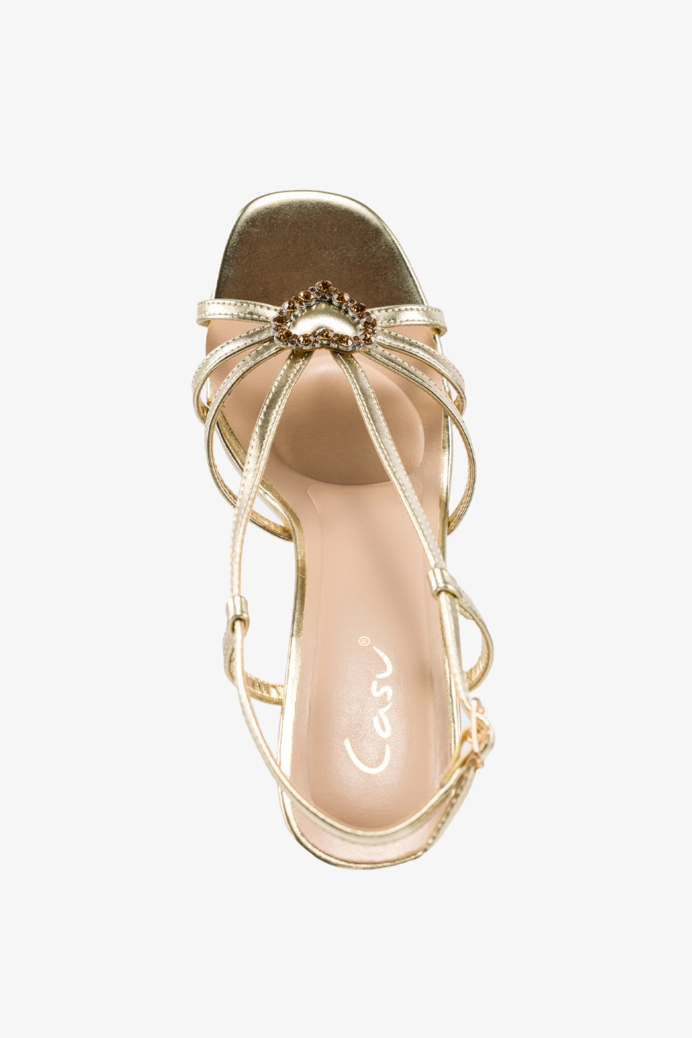 Złote sandały to propozycja dla kobiet, które cenią sobie połączenie luksusu, stylu i wygody. Wykonane z najwyższej jakości skóry ekologicznej, sandały wyróżniają się nie tylko estetyką, ale również doskonałym dopasowaniem do stopy. Jeśli marzysz o butach, które podkreślą Twój indywidualny styl i sprawią, że poczujesz się wyjątkowo na każdej okazji, to właśnie sandały z Casu są idealnym wyborem. Dzięki unikalnym zdobieniom, innowacyjnej konstrukcji i precyzyjnemu wykonaniu, model ten stanowi esencję klasy i wyrafinowania. To doskonały wybór na przyjęcia, wieczorne wyjścia, karnawał, studniówkę a także romantyczne randki.
