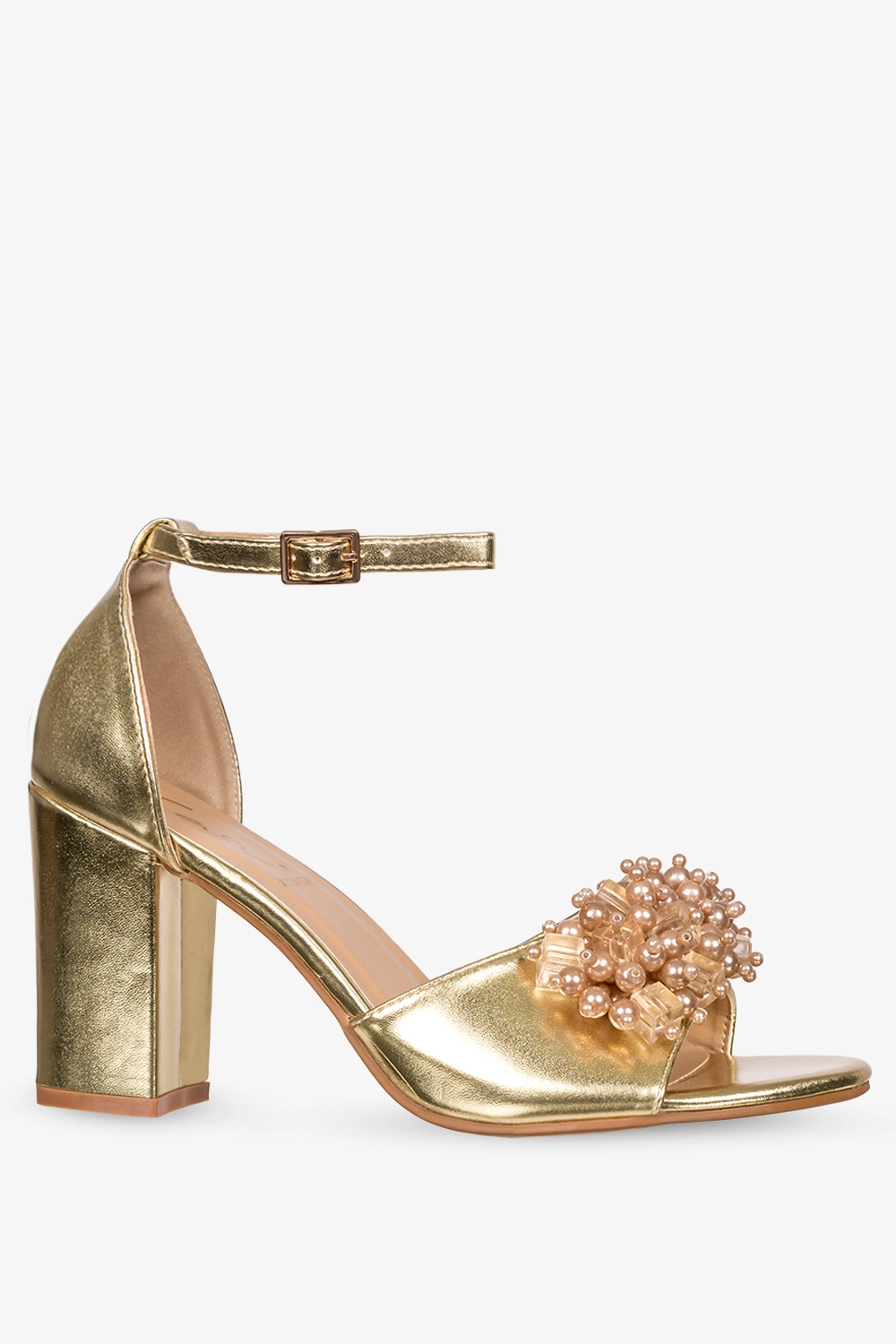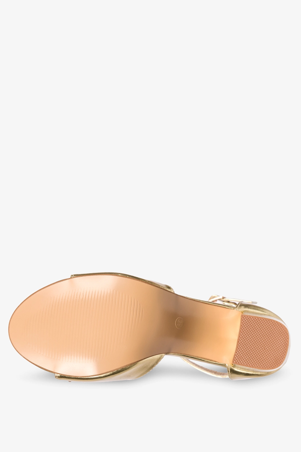 Złote sandały z ozdobą na słupku z zakrytą piętą pasek wokół kostki Casu ER23X4-G